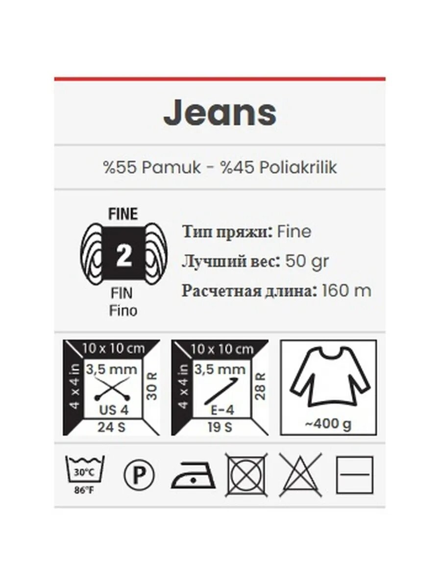 Пряжа YarnArt Jeans 80 светло-серый 1 моток информация:
