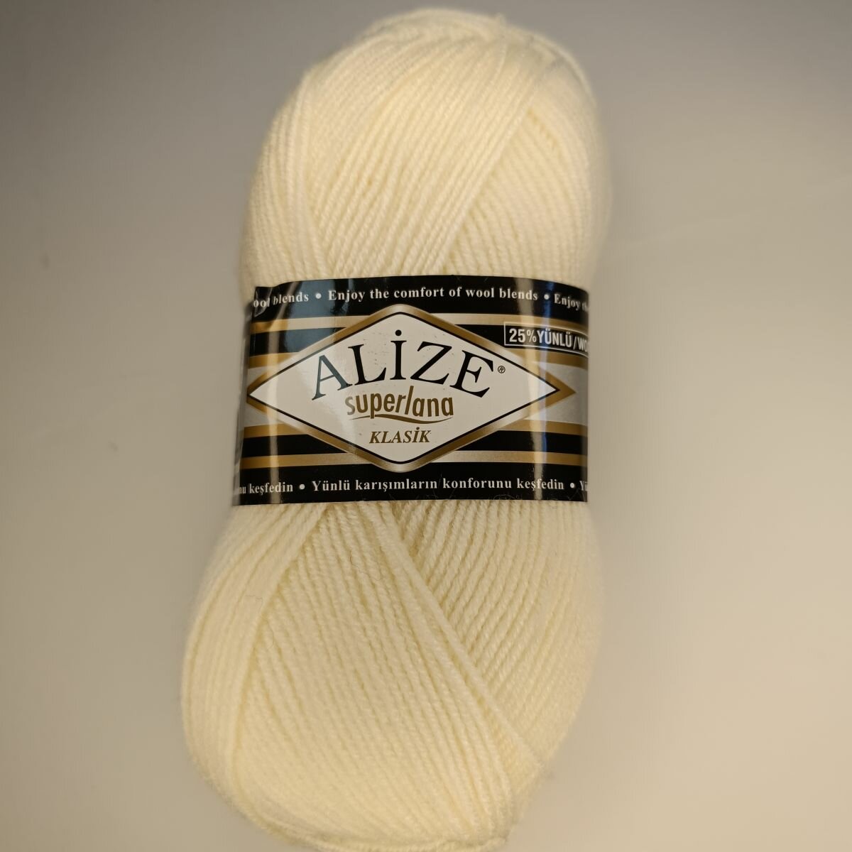 10 цен на Пряжа Alize Superlana klasik (Суперлана Классик) - 1 моток 62 молочный 25% шерсть, 75% акрил 280м/100г