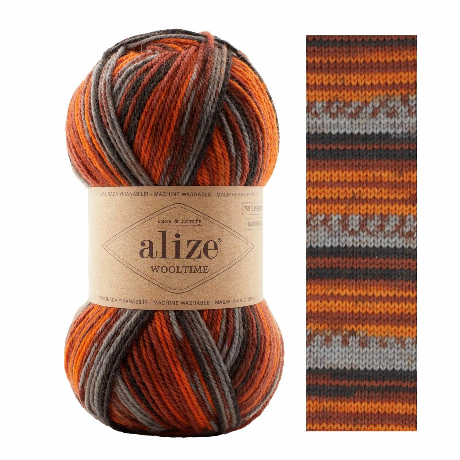 Пряжа Alize Wooltime (Вултайм) - 1 моток Цвет: 11015 коричневый принт 75% шерсть, 25% полиамид, 100г 200м