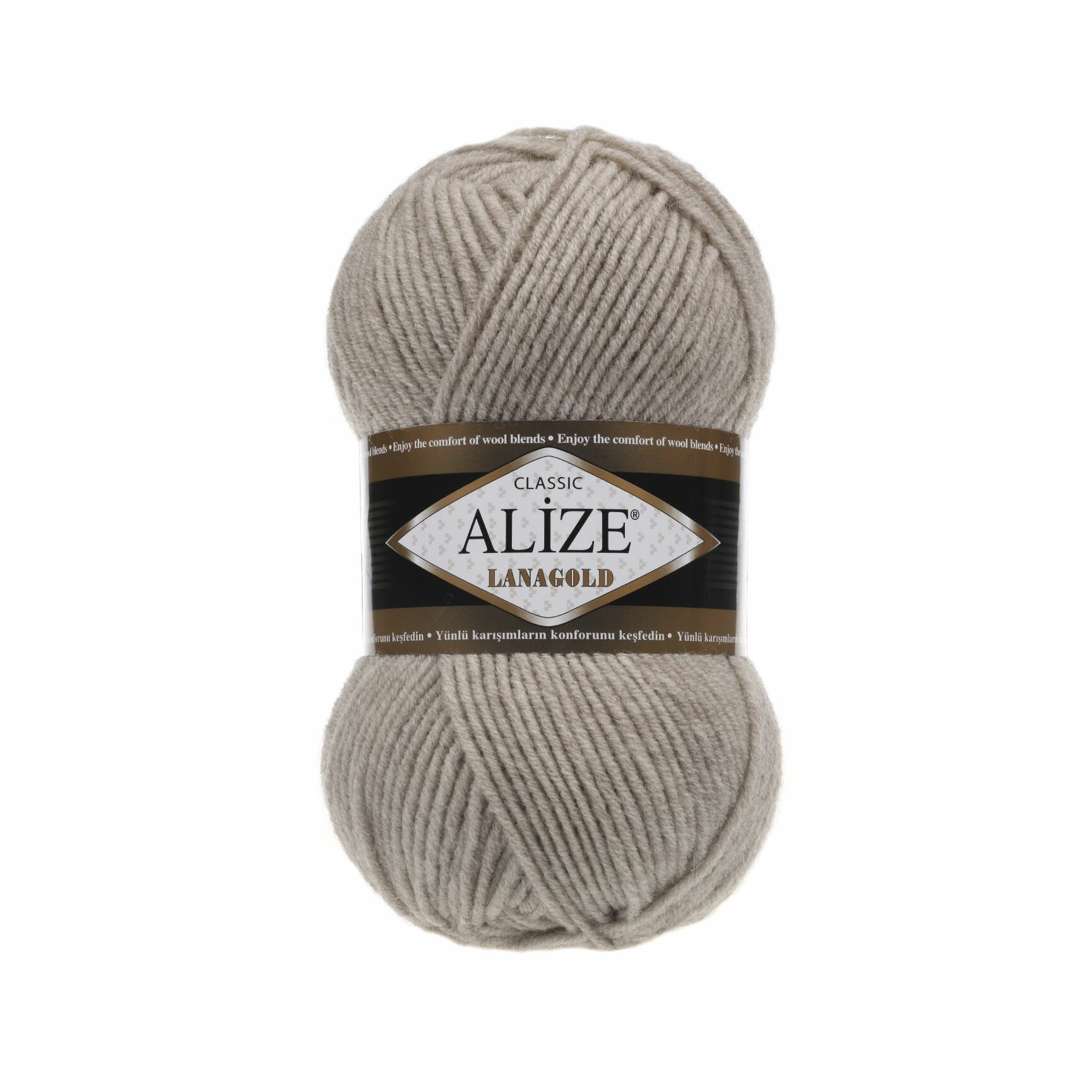 Пряжа ALIZE LANAGOLD 800, серо-бежевый - 283, 49% шерсть, 51% акрил, 5 мотков, 100 г, 730 м. 1 631 ₽