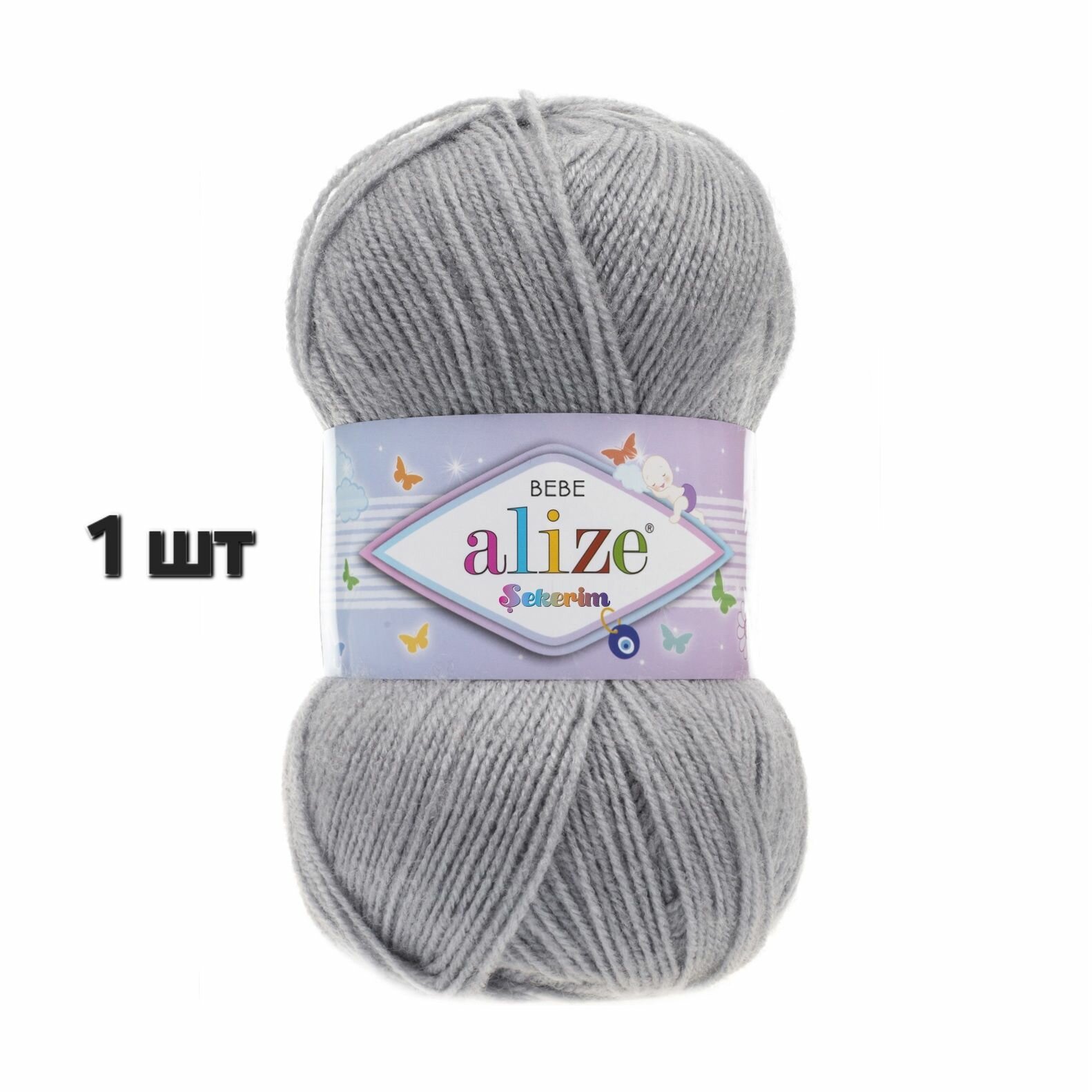 10 цен на Пряжа Alize Sekerim Bebe Стальной (344) 1 моток 100 г/320 м (100% акрил) ализе шекерим бебе