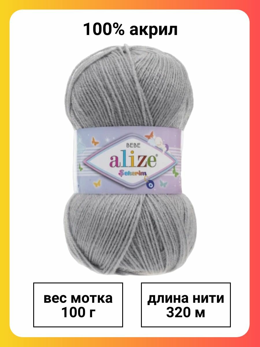 Пряжа для вязания Alize Sekerim Bebe (Шекерим Беби) - 5 мотков 21 серый меланж, детская гипоаллергенная, 100% акрил, 320м/100г