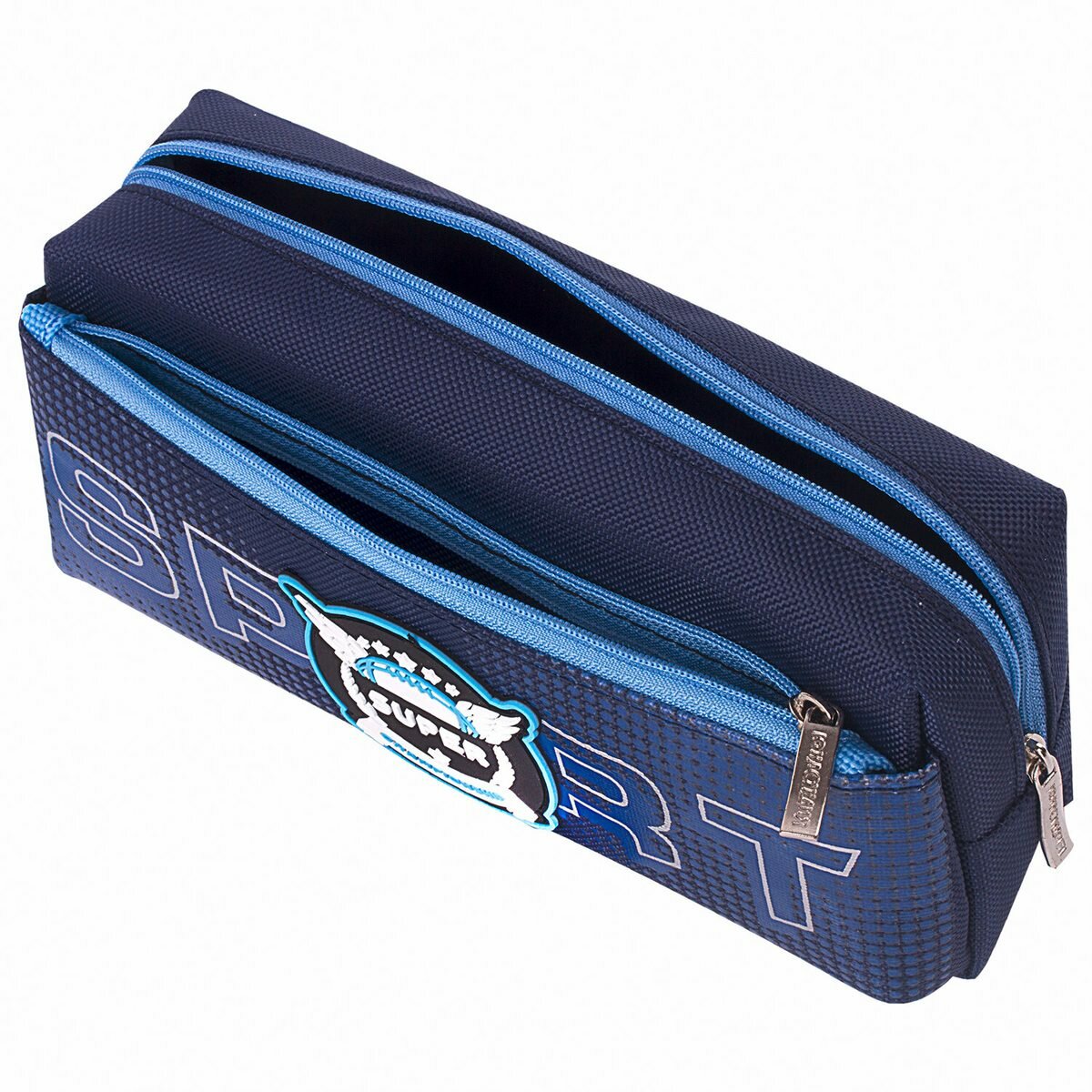 Пенал юнландия, 2 отделения, мягкий, полиэстер, Super, синий, 21х6х9 см, 270277