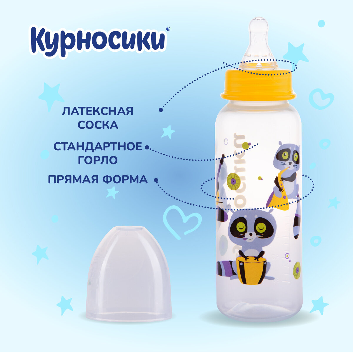 Антиколиковая бутылочка для кормления новорожденного Курносики с силиконовой соской "Еноты", 250 мл, 0+ мес, желтый информация: