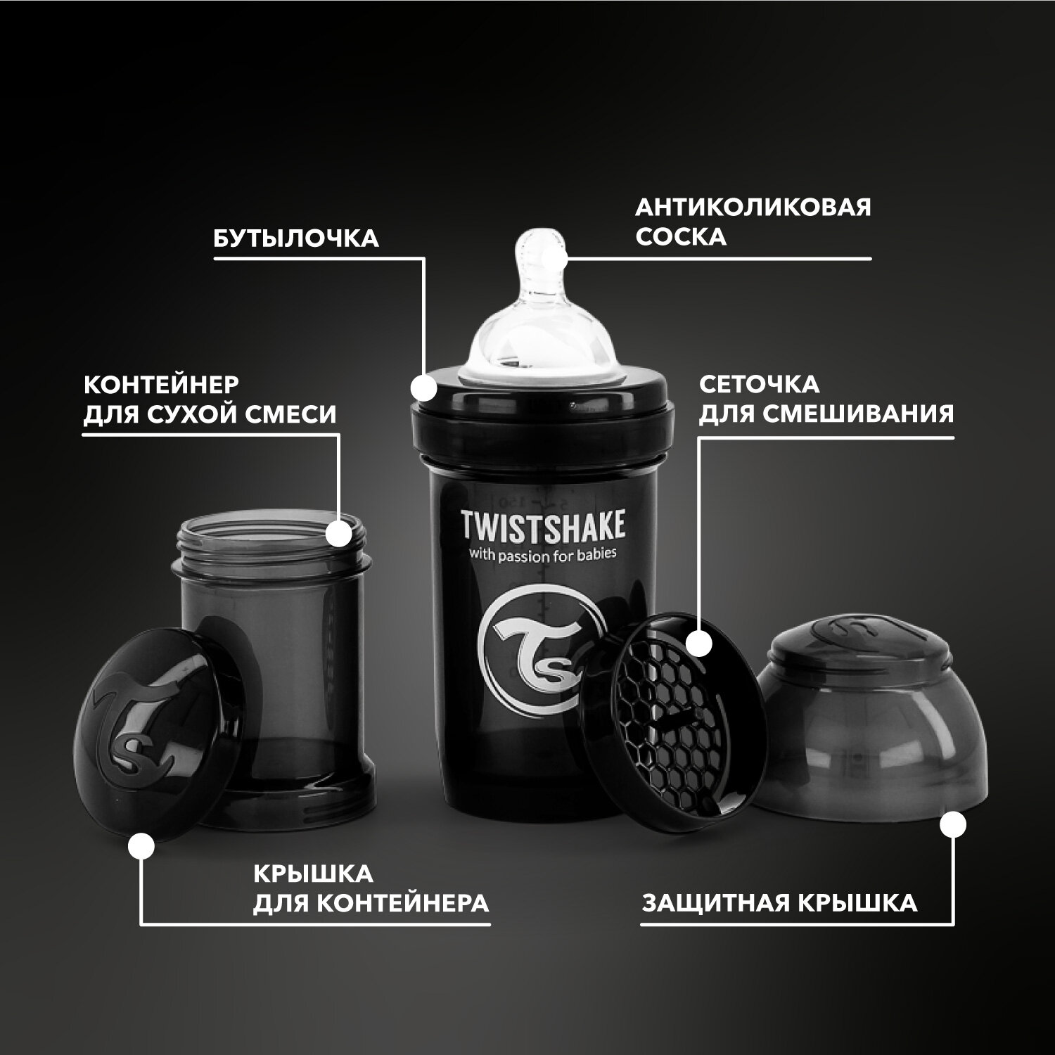 10 цен на Детская антиколиковая бутылочка Twistshake для кормления, чёрная, 180 мл, от 0 мес, подарок 2 пустышки