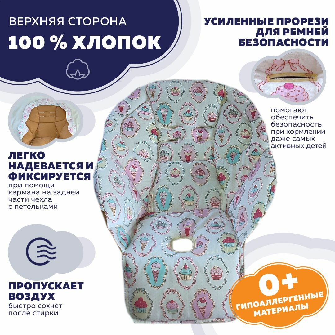 Сменный чехол Peg Perego Tatamia "Стрекоза" на стульчик для кормления, Пироженки. Хлопок