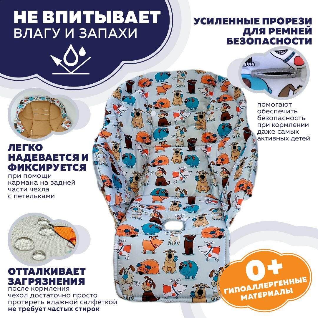 Сменный чехол на стульчик для кормления Peg Perego Tatamia "Стрекоза", Собачки. Водостойкий