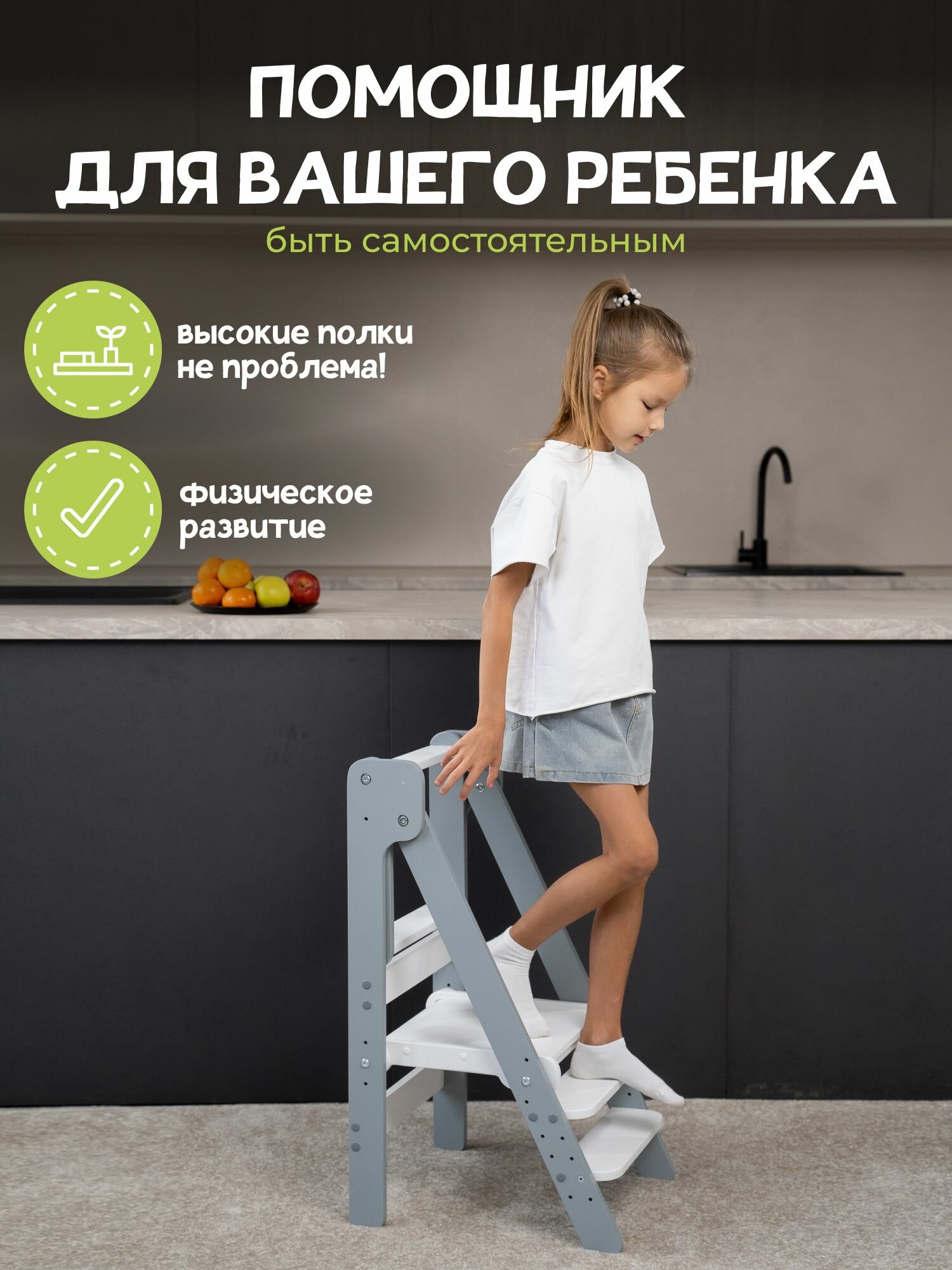 Башня помощника Монтессори "Я сам" серо-белая PAPPADO информация: