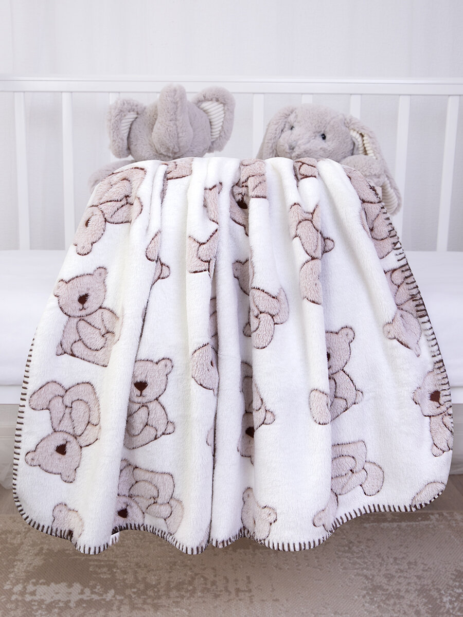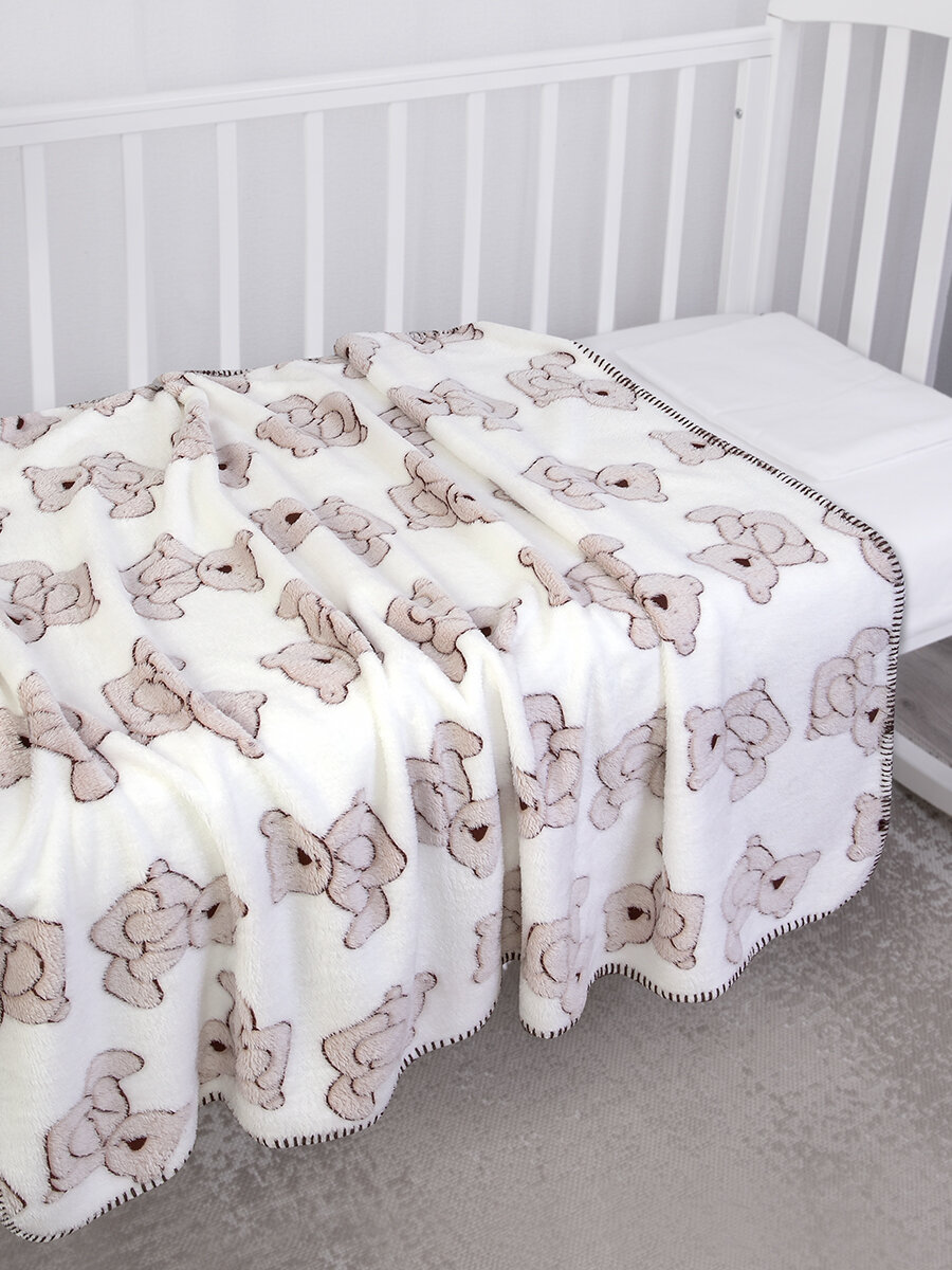 Плед для новорожденного 100х150 пушистый детский на кровать "Мишки на белом" 764 ₽