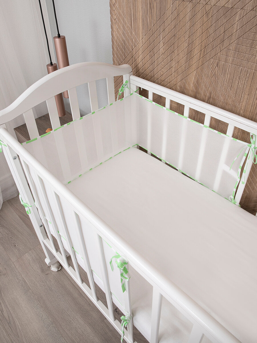 Бортики в кроватку для новорожденных 2 шт сетка защитный 31х180 см, на прямоугольную, круглую, овальную кровать, цвет салатовый 1 172 ₽