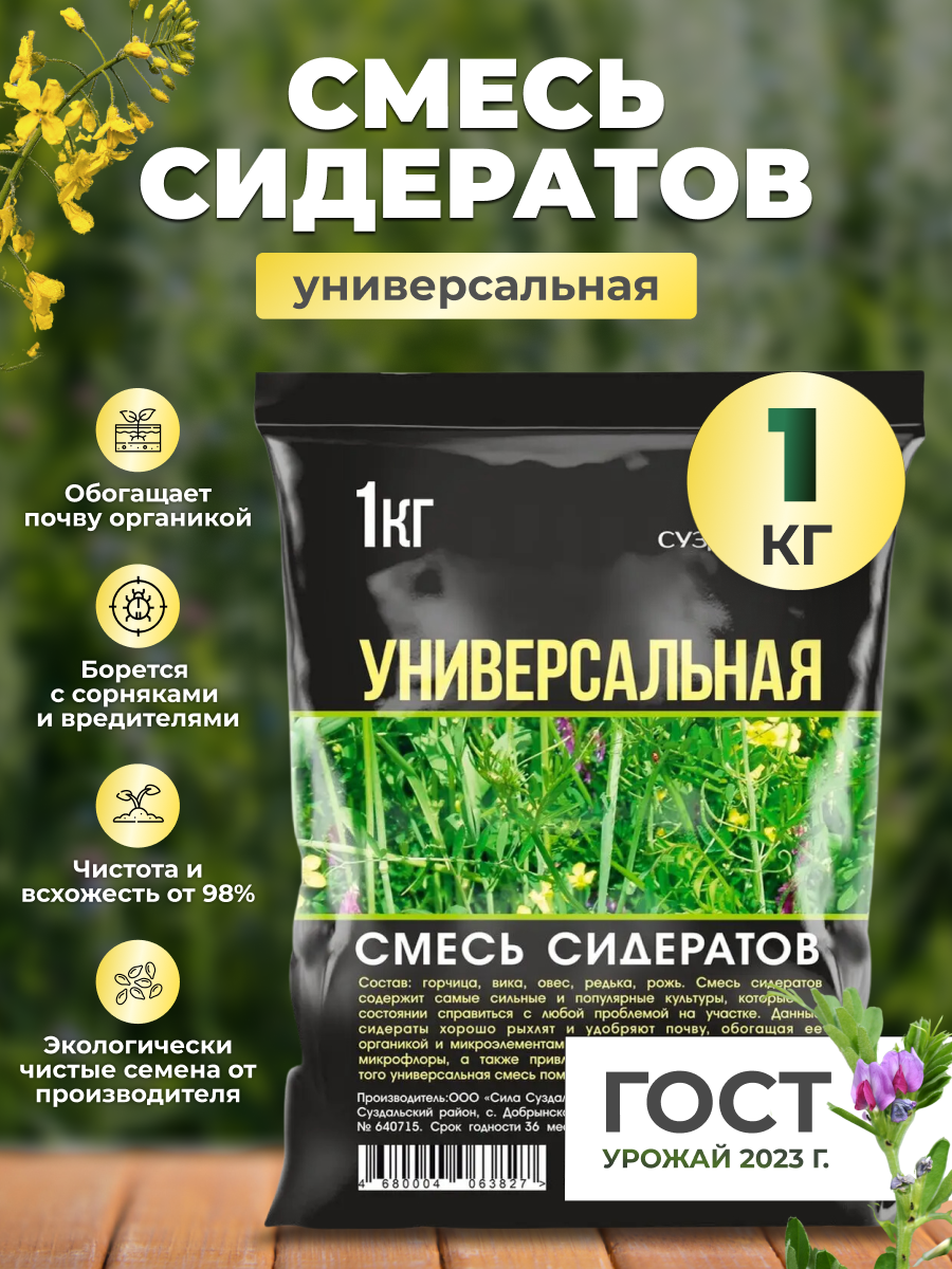 Смесь сидератов "Универсальная" Сила Суздаля / горчица, овес, редька, рожь, 1 кг информация: