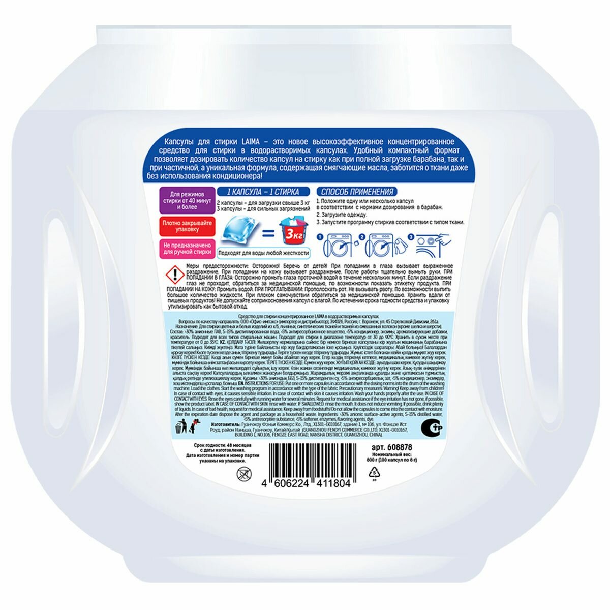 | Особенности | антибактериальное / безопасно для детей / биоразлагаемое / концентрат / растворимая оболочка / стирка при любой температуре |