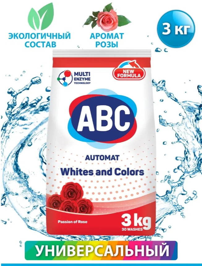 Стиральный порошок ABC, "Роза страсти", 3 кг, для всех типов тканей, с отбеливателем информация: