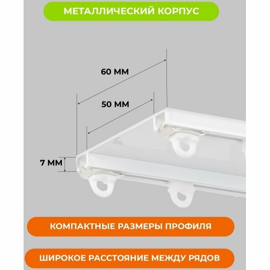 Карниз для штор профильный, настенный, потолочный двухрядный металлический 200 см 2 567 ₽