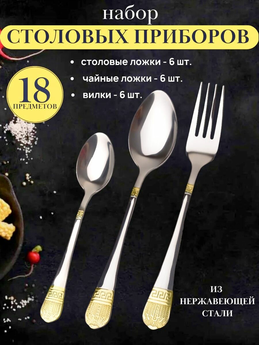 | Дополнительная информация | Набор столовый прибор 18 предмета, включает 6 ложка чайная, 6 ложек столовых, 6 вилок столовых 6 нож столовый |