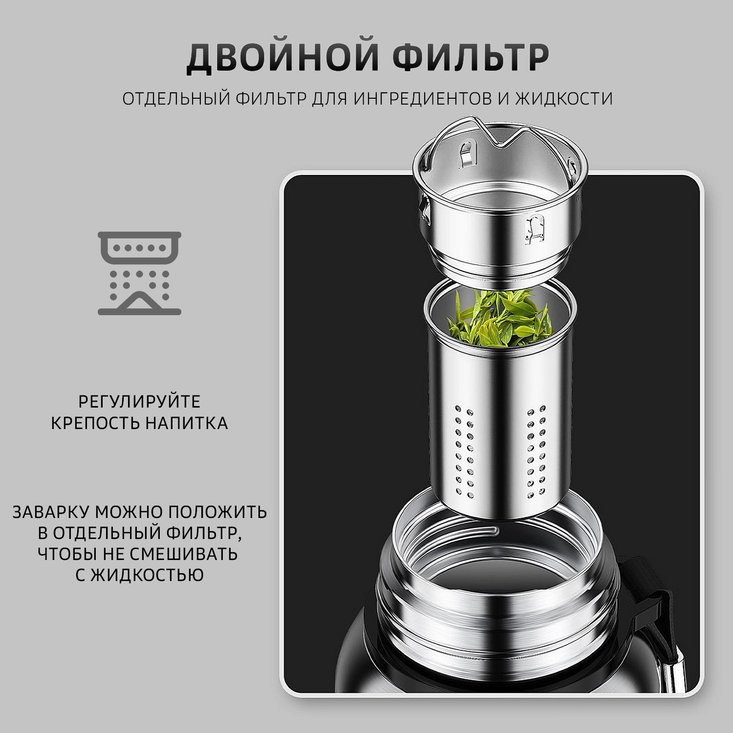 Отзывы на Термос черный 0,6 л, Mejor, с ситечками, для рыбалки и туризма, с силиконовым основанием, сталь SUS 316