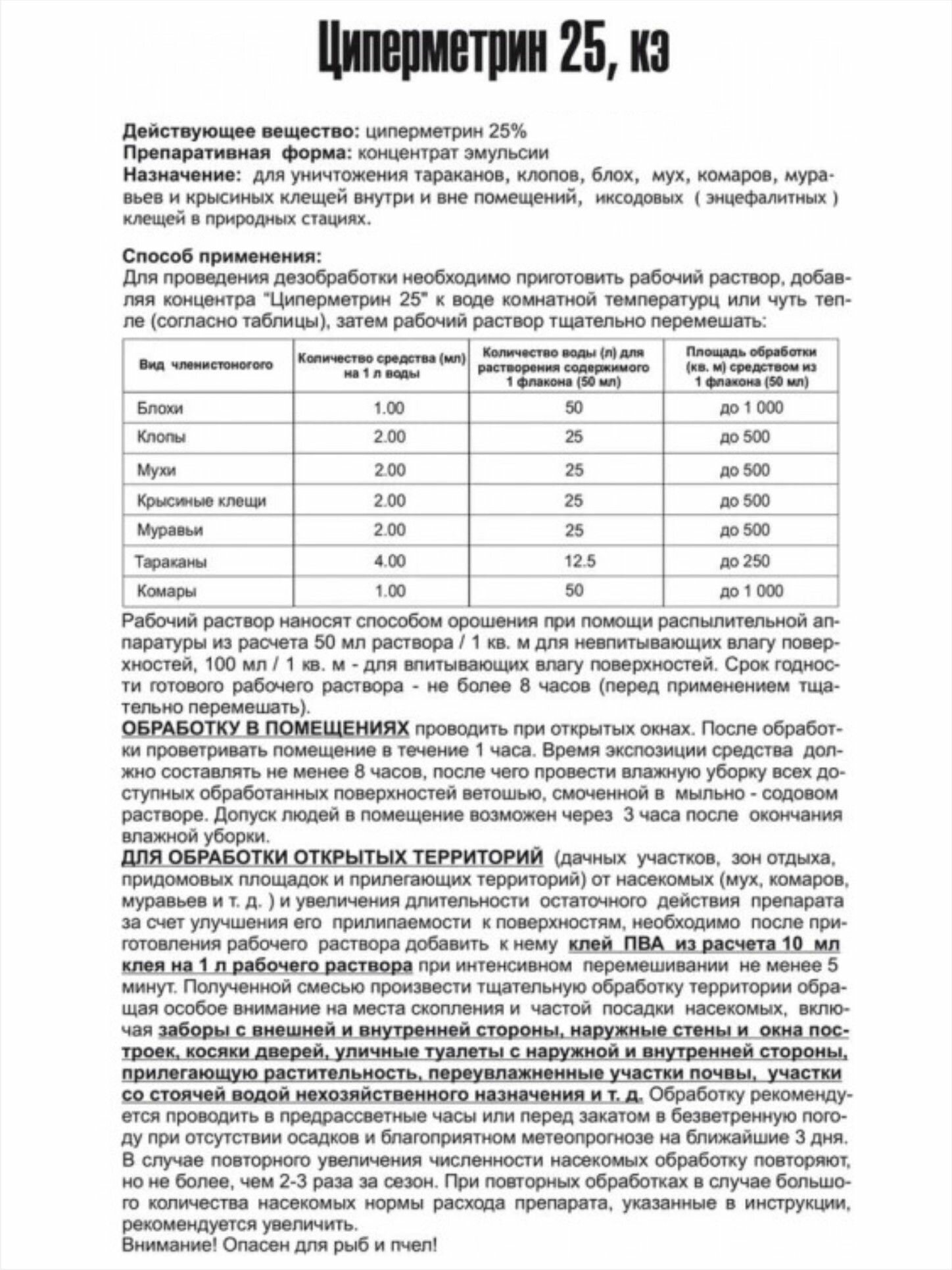 Циперметрин Концентрированное средство от тараканов, клопов, блох, мух, комаров, муравьев.