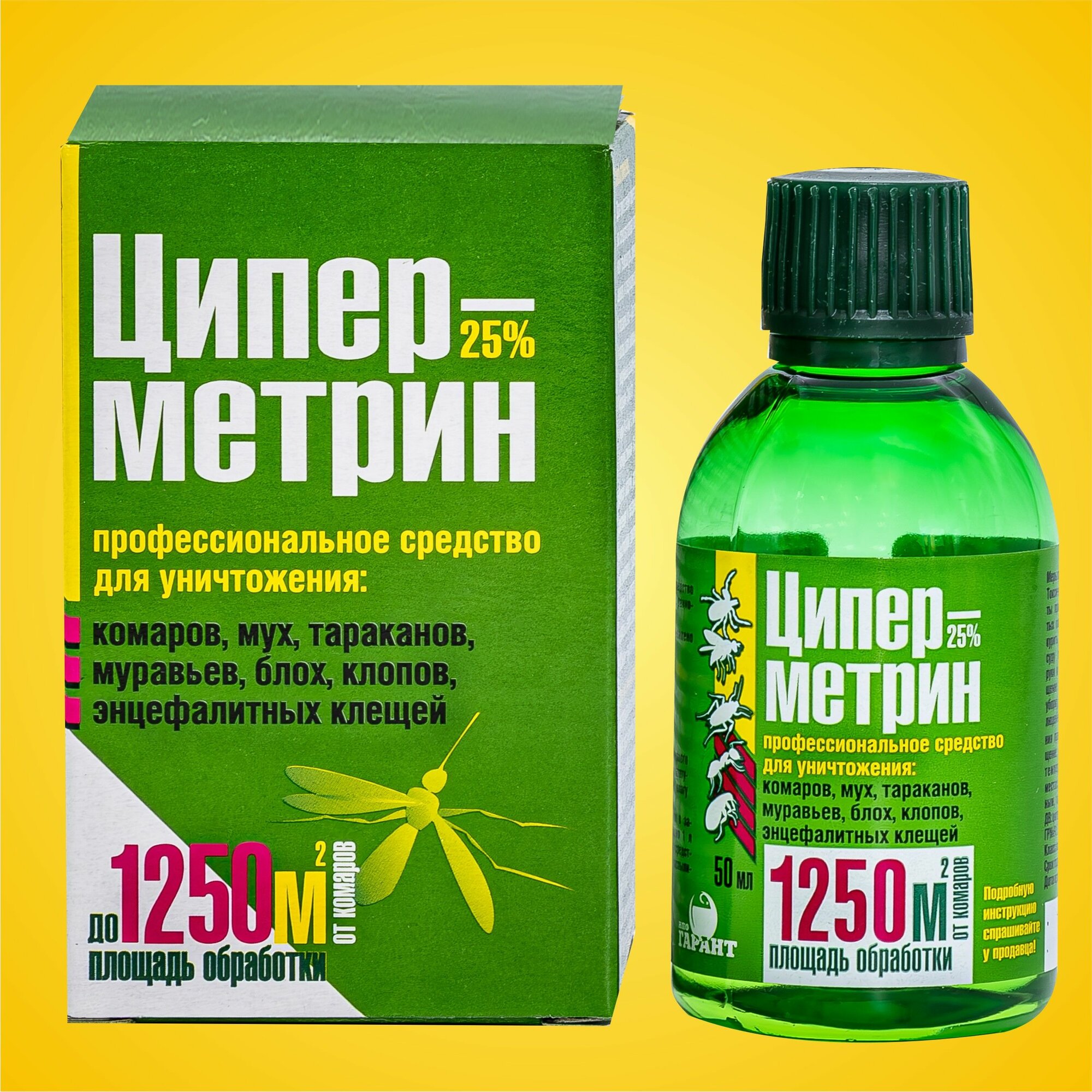 Циперметрин 25 средство от клещей, тараканов, муравьев, клопов, комаров, мух "Гарант", 50 мл. информация: