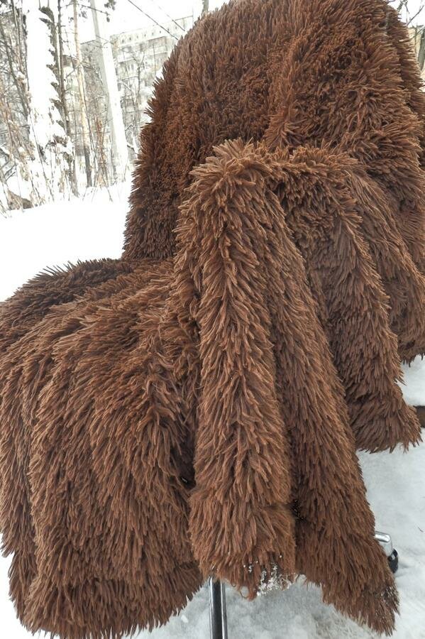 Пушистый плед с длинным ворсом 200 на 220 см. Цвет коричневый 1 838 ₽