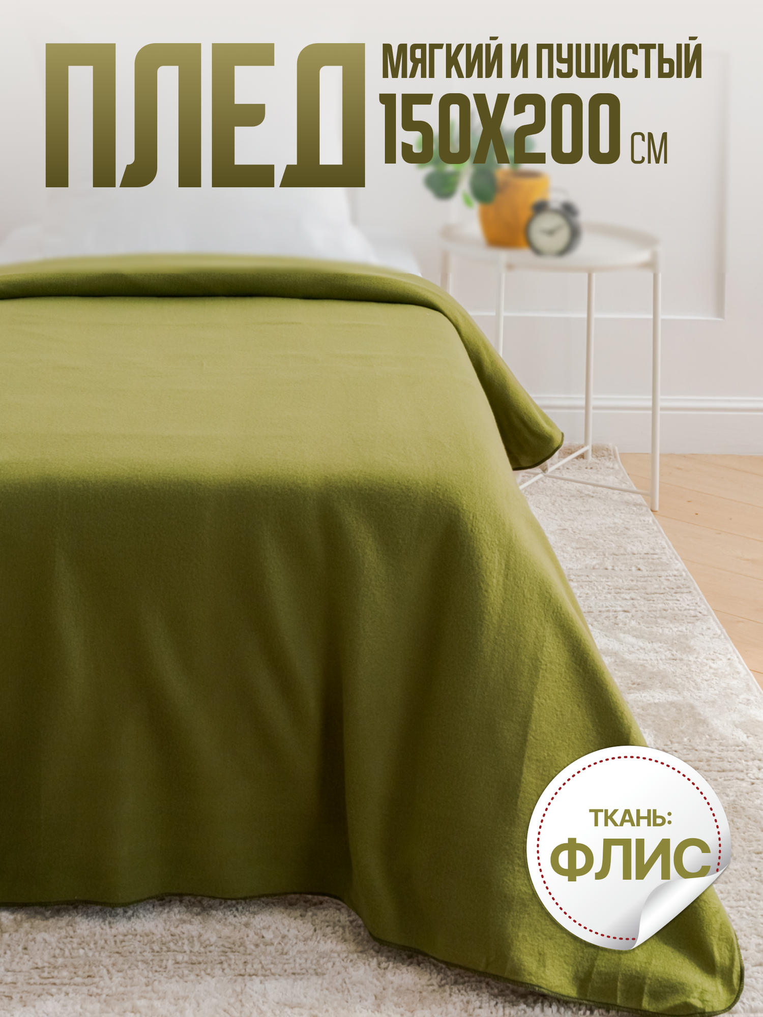 10 цен на Плед 150х200 флисовый однотонный Павлина Оливковый