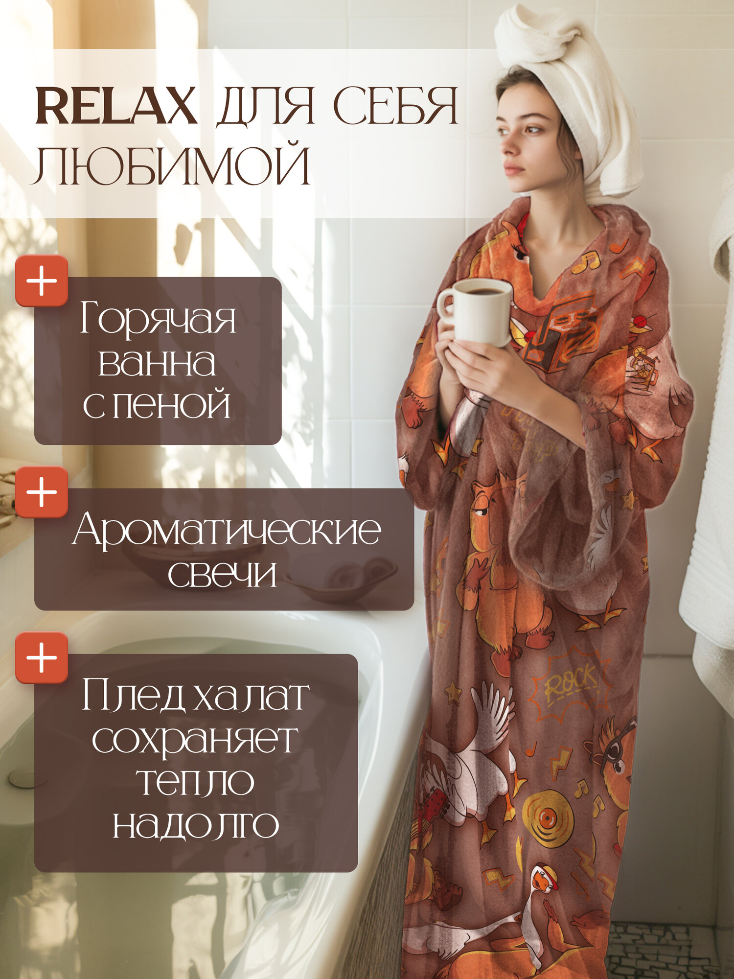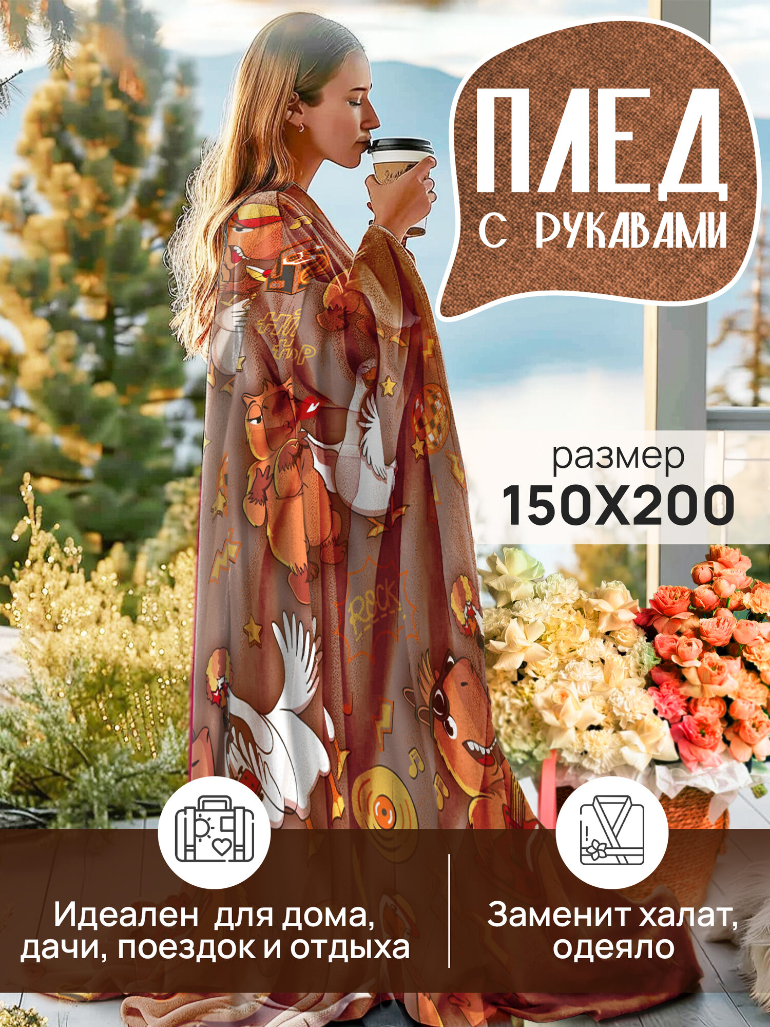 Отзывы на Плед с рукавами Totmart плюшевый, плед накидка, плед халат 150х200 см, капибара