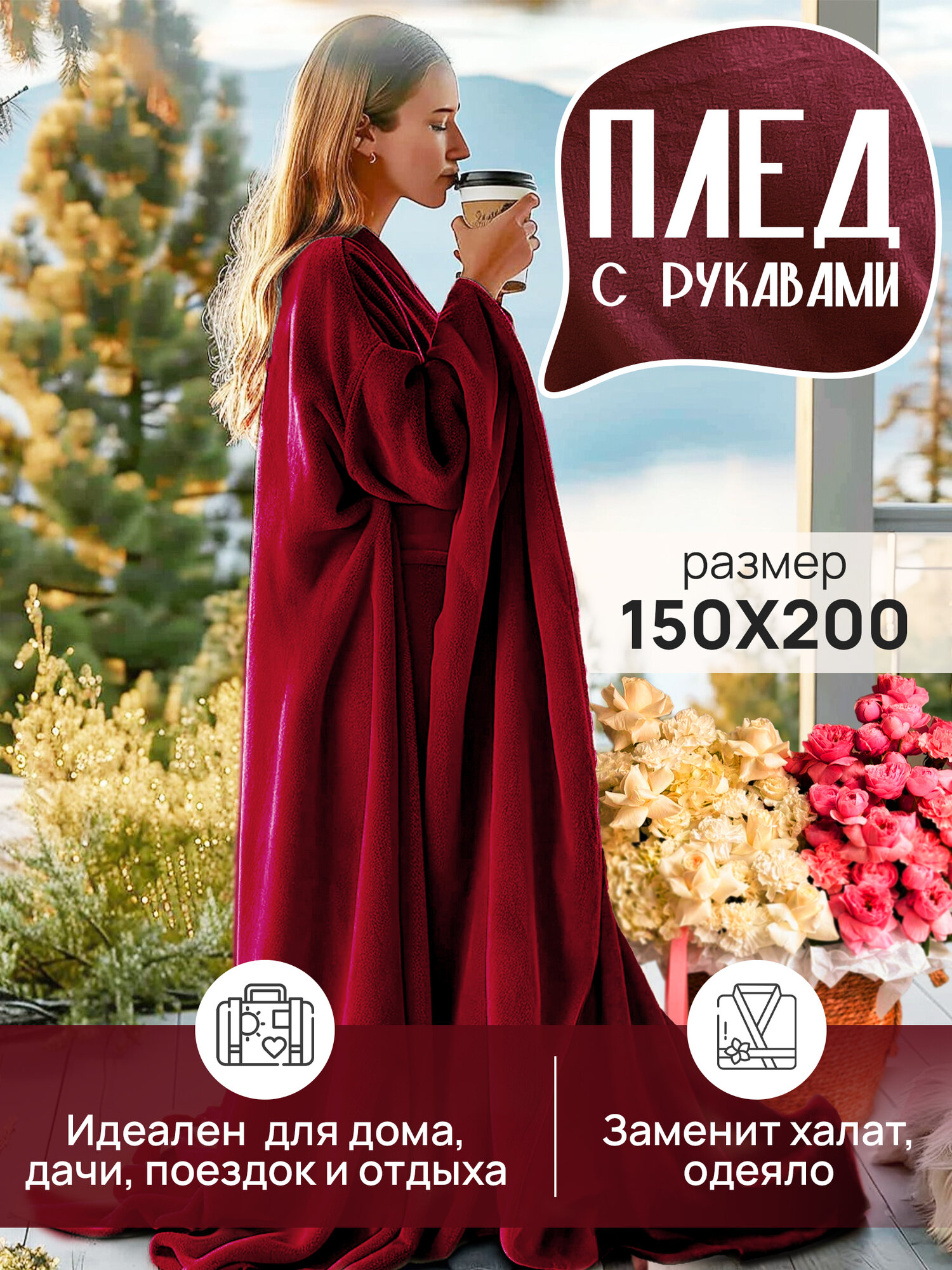 Плед с рукавами Totmart плюшевый, плед накидка, плед халат 150х200 см, бордовое информация: