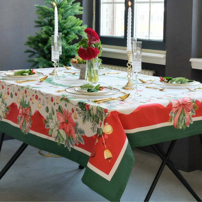 10 цен на Скатерть Этель «Рождественский венок», 150х220 см, с вгмо, 100% хл, саржа 190 г/м2