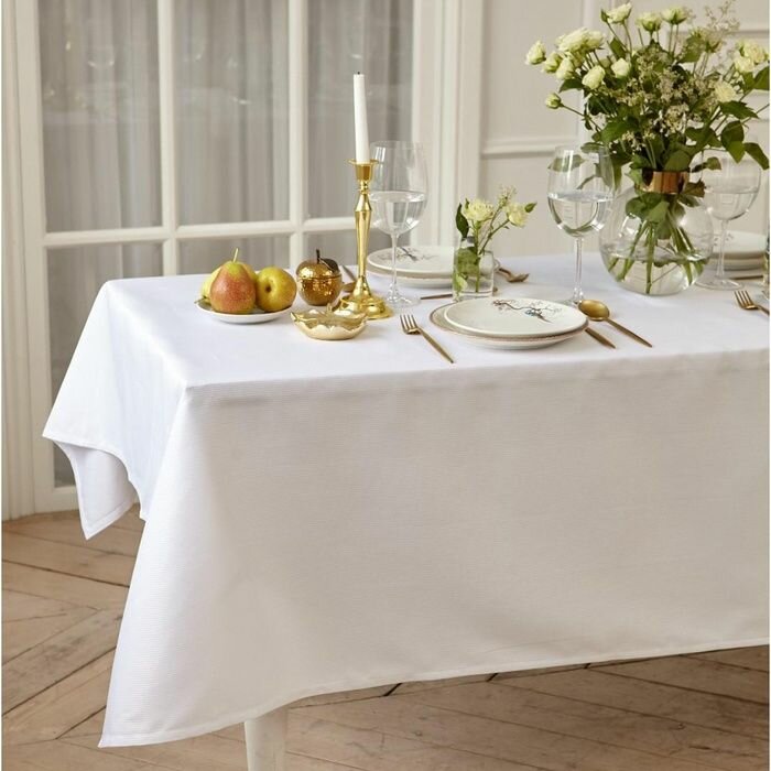 Скатерть водоотталкивающая Этель Lines 150*250 +/-3см, цв.белый, пл. 192 г/м2, хл
