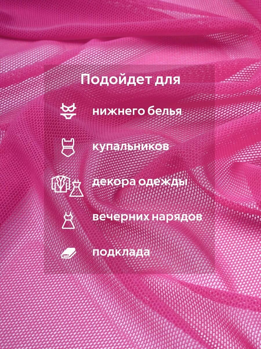 Ткань сетка трикотажная эластичная стрейч для белья, купальников, одежды Розовая Ширина - 155 см Длина - 1 метр Плотность - 90 г/м 600 ₽