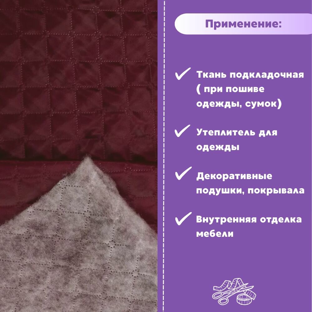 10 цен на Ткань термостеганая подкладочная Таффета+синтепон, цвет бордовый, ш-150 см, на отрез, цена за 2 пог. метра