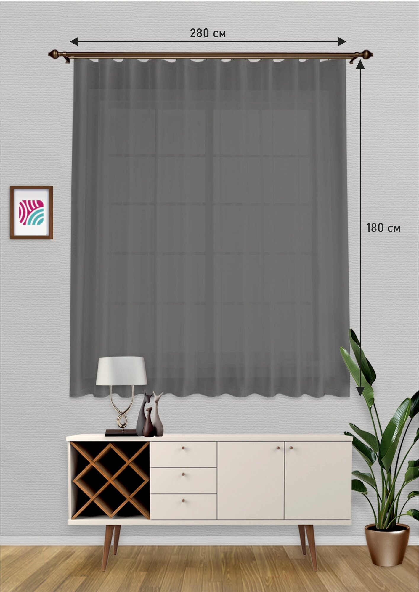 ВсеТканиТут Тюль "Вуаль Bacio" / тюль короткий на кухню / балкон / для спальни / темно-серый / графит/ 1 шт - 280х180см информация: