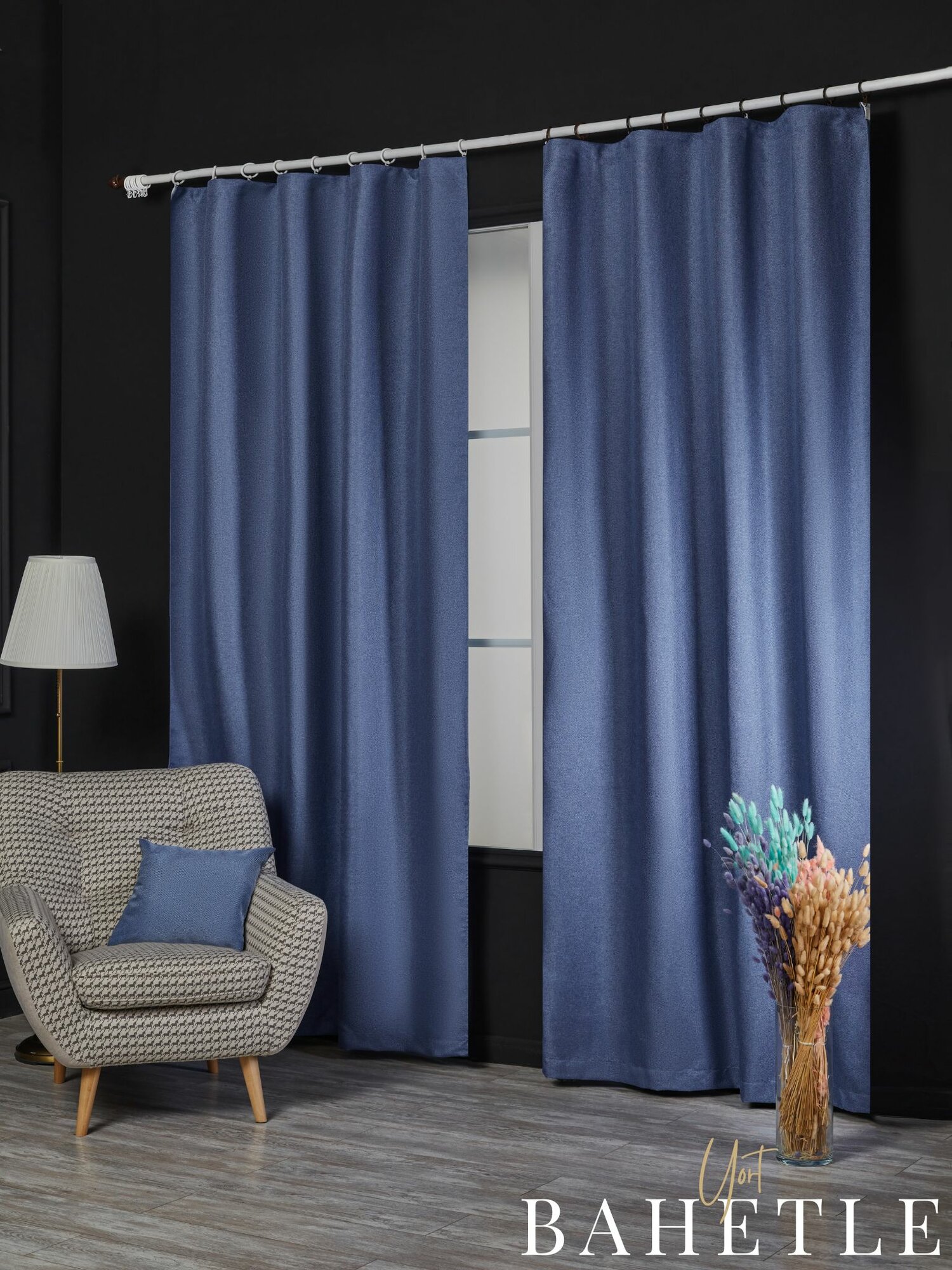 Комплект штор Bahetle из Рогожки 150х250 см 2 шт на ленте, однотонные портьеры для спальни, детской, гостиной синие информация: