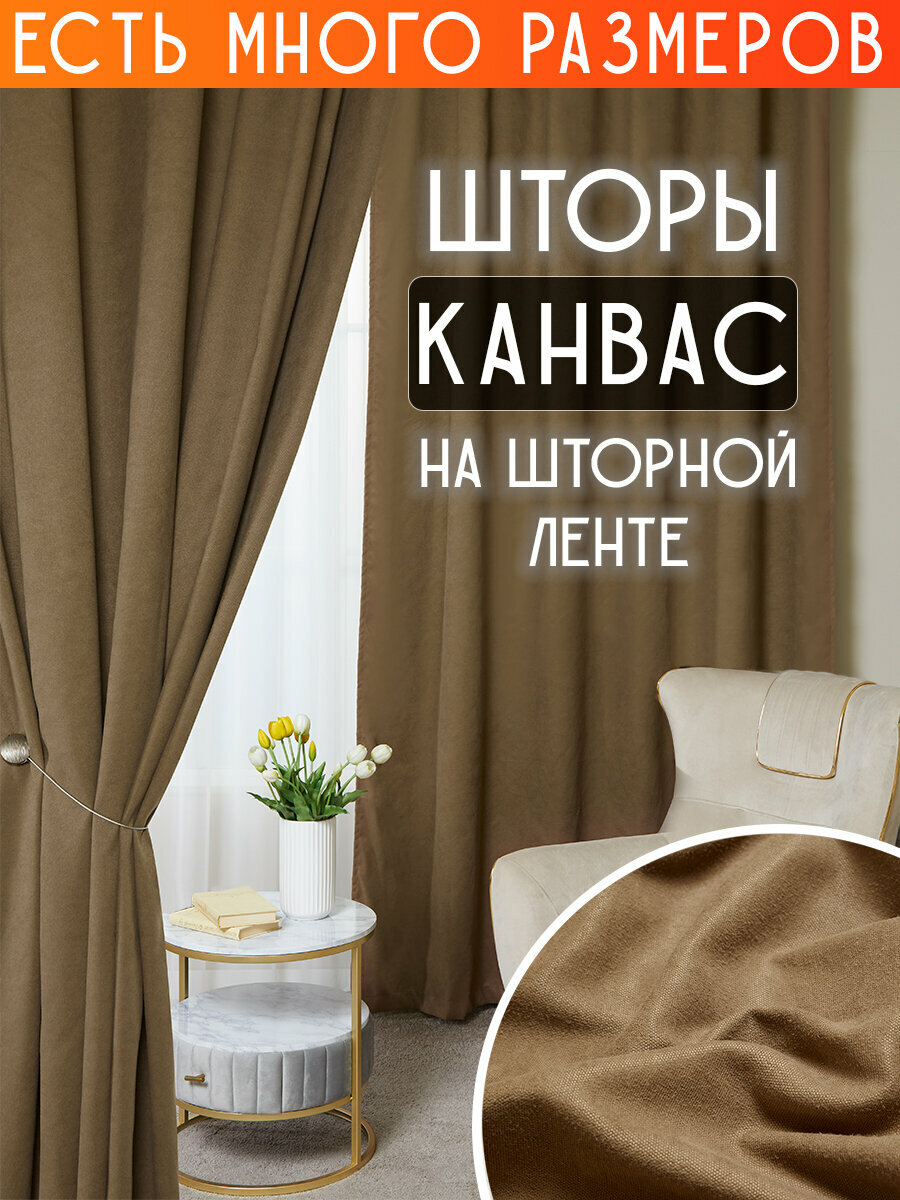 Готовый комплект плотных интерьерных штор(портьер) канвас (2 шт., каждая штора 150x170 см) со шторной лентой 3 381 ₽