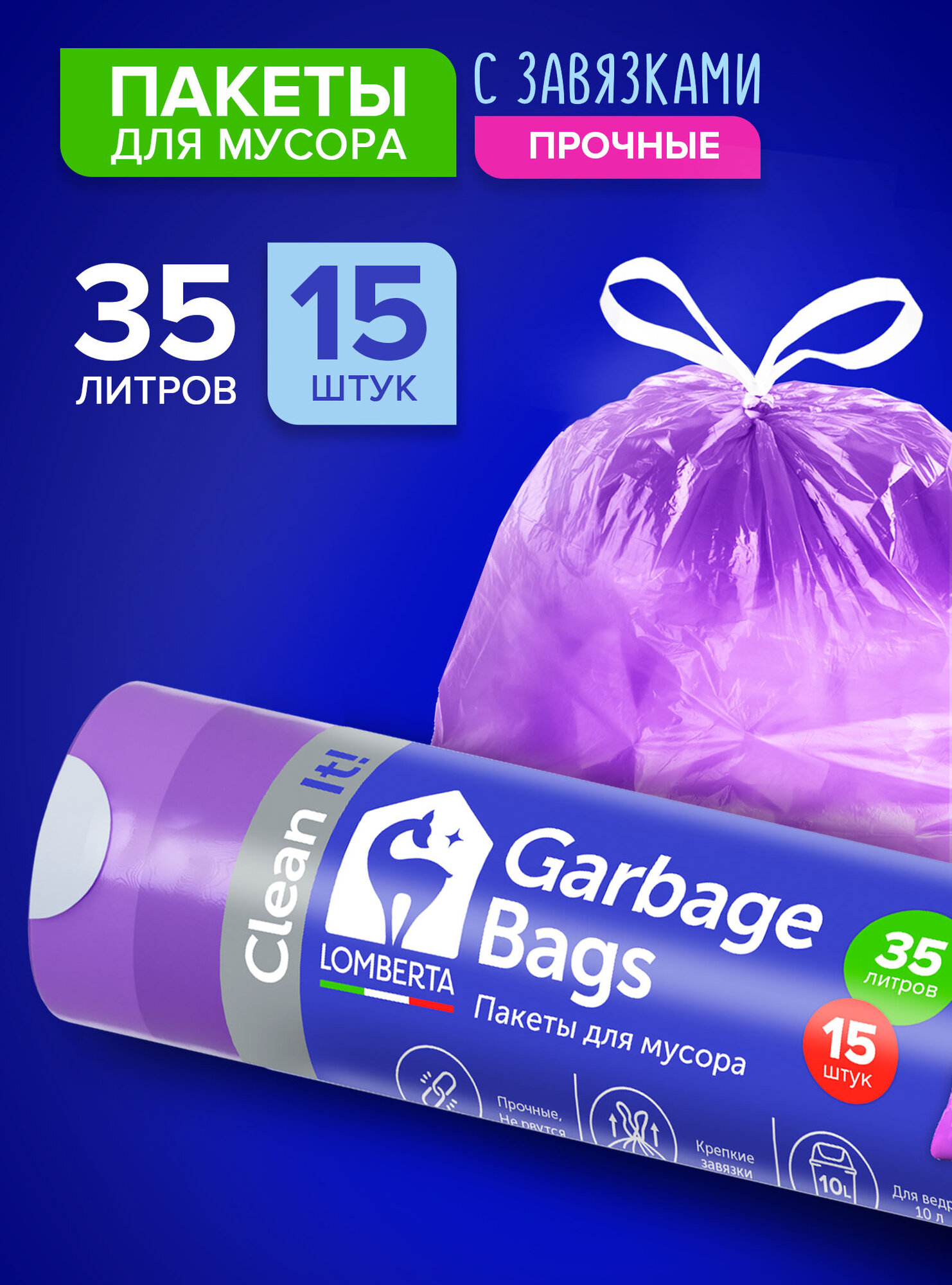 Мешки для мусора Lomberta 35 л, 15 шт в рулоне, с завязками, 1 упак