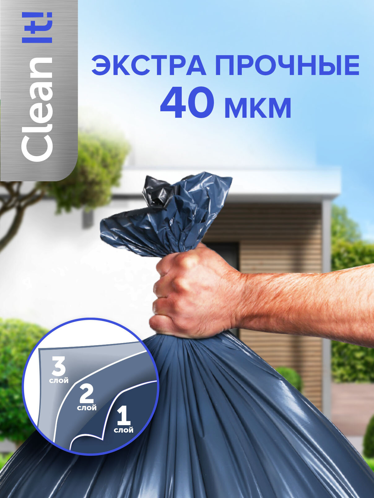 Мешок мусорный 180 литров, сверхпрочный, для строительного мусора, для уборки территории, для уборки после ремонта