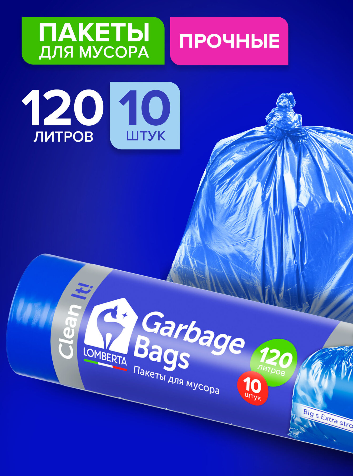 Мешки (пакеты) для мусора Lomberta 120 л, 10 шт, прочные, для хранения и переезда, мусорный пакет информация: