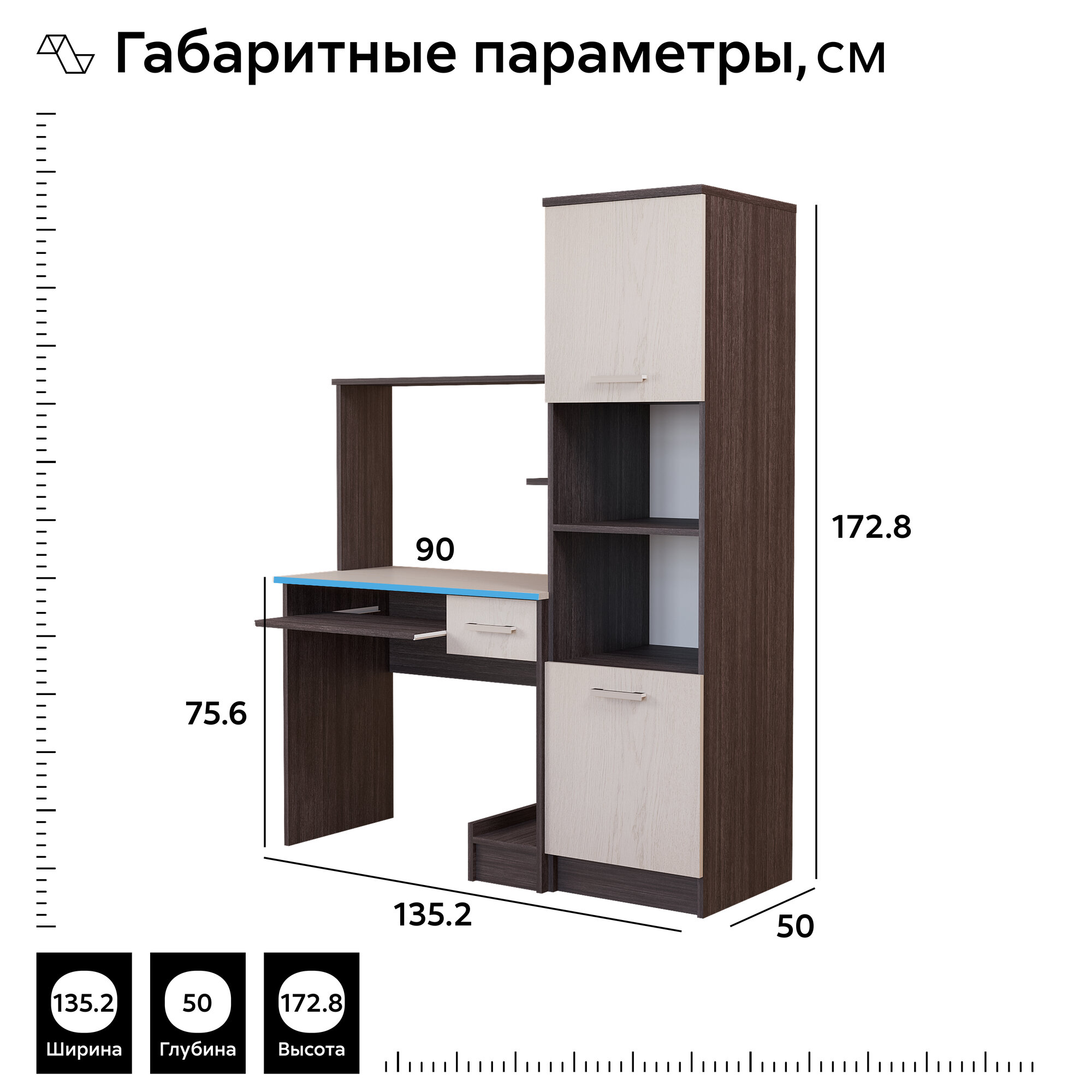 Стол компьютерный со шкафом Нонтон №3, дуб беленый / венге, 135.2х50х172.8 см информация: