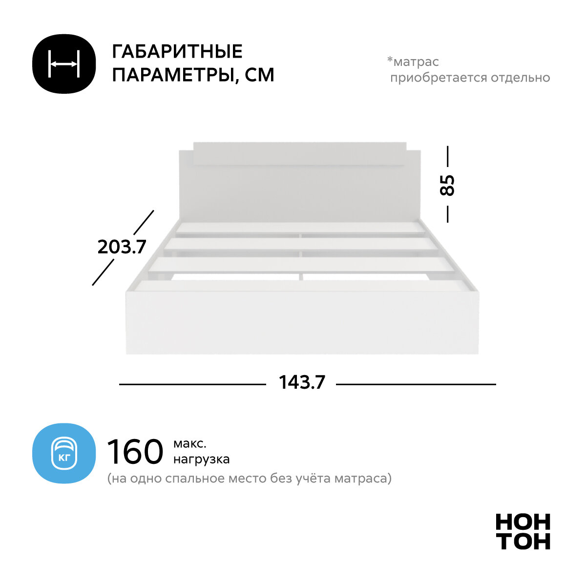 Кровать двуспальная Нонтон Эко, 140*200 см, белый гладкий информация: