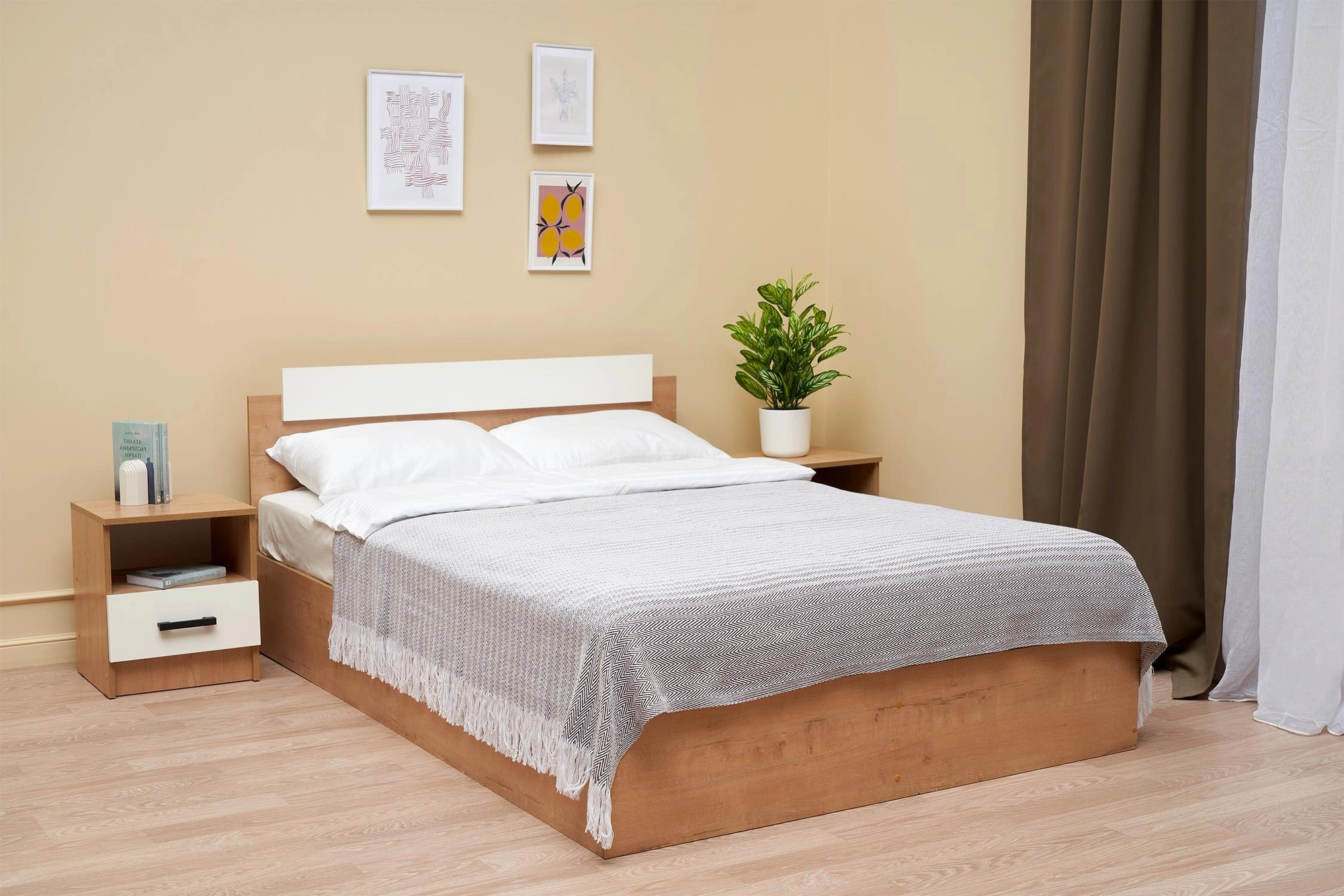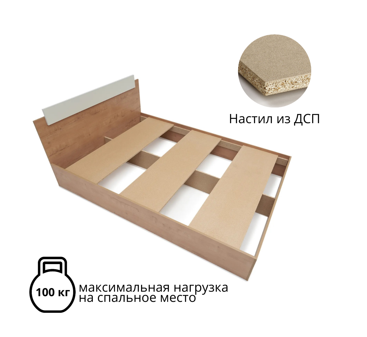Кровать Эко настил ЛДСП (сп. м. 140х200 см), Дуб вотан/Белый гладкий
