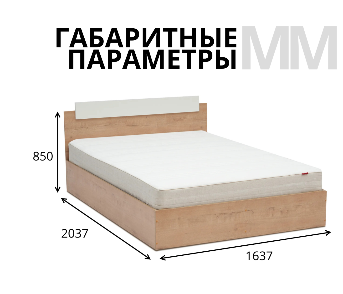Кровать ЭКО 1,6 Дуб вотан/Белый гладкий ЛДСП, с настилом, для спальни, дома, дачи 1637х2037х850 ЭРА 7 400 ₽