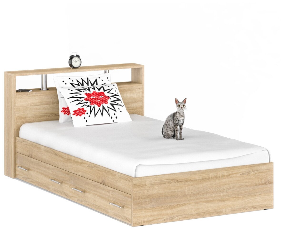 Кровать с ящиками Камелия 1200, цвет дуб сонома, ШхГхВ 123,5х217х78,2 см., спальное место 1200х2000 мм., без матраса, основание есть