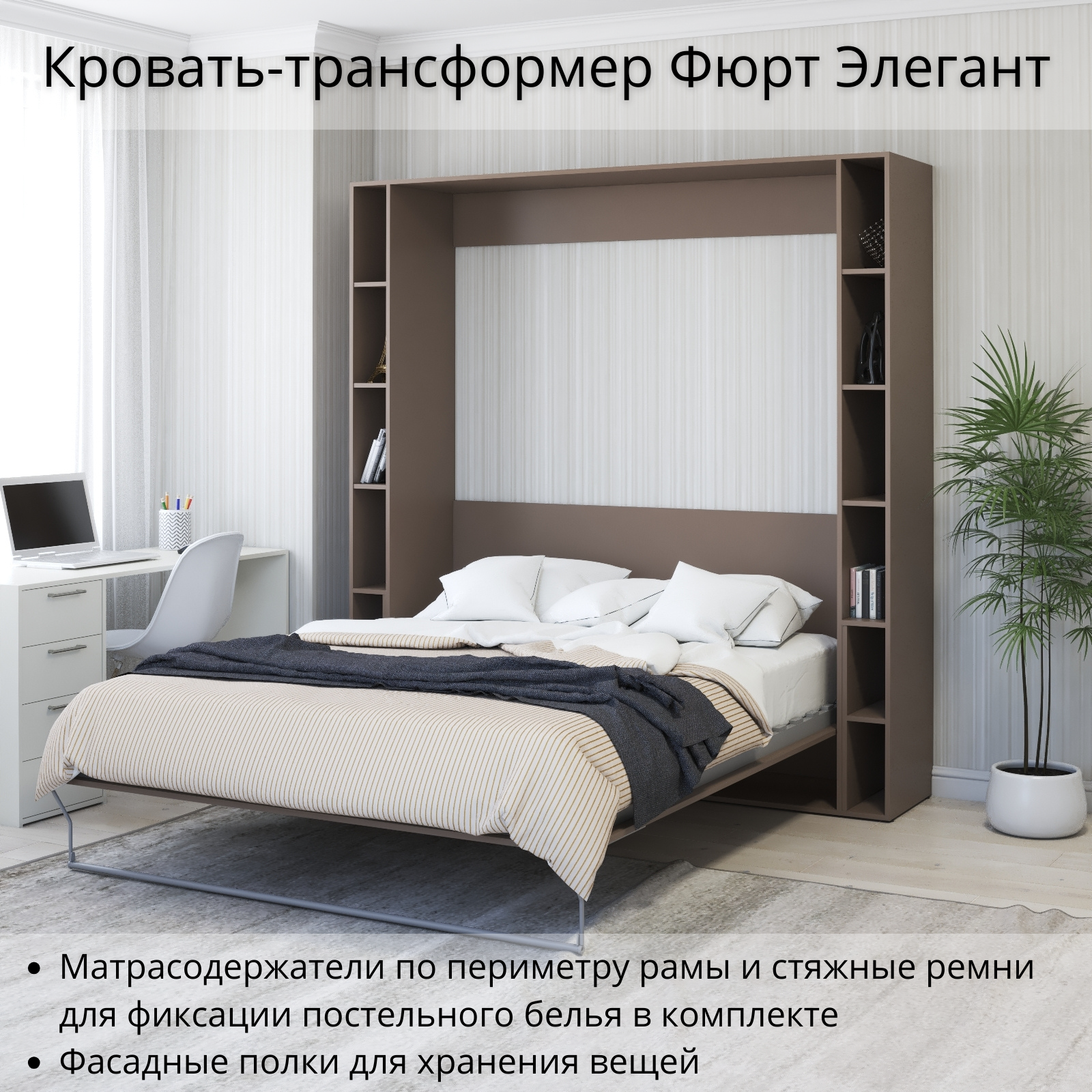 Шкаф кровать трансформер с креплением к стене, Stylint, Фюрт Элегант, 160х200, Мокко/Белый платиновый 74 878 ₽