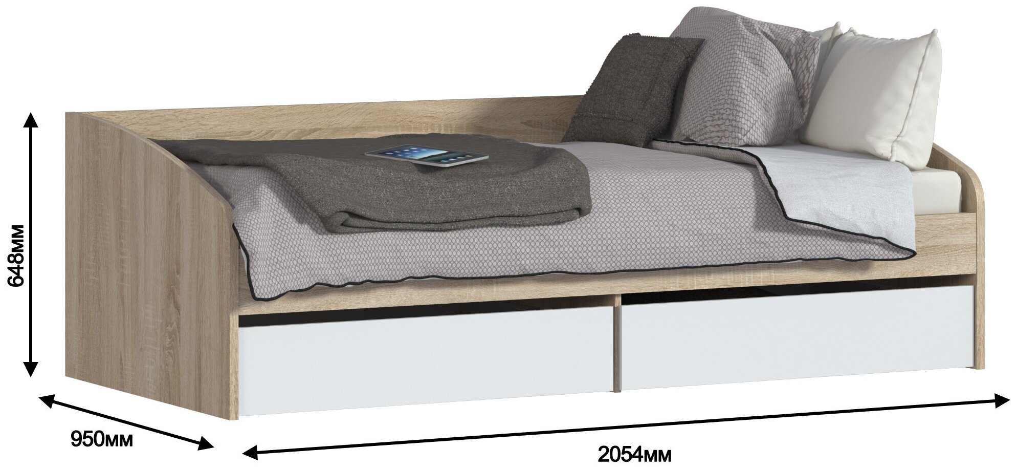 Односпальная кровать столплит Мамбо СБ-2372. Н без матраса, с двумя ящиками, Дуб Сонома/Белый 205х64х95 см информация: