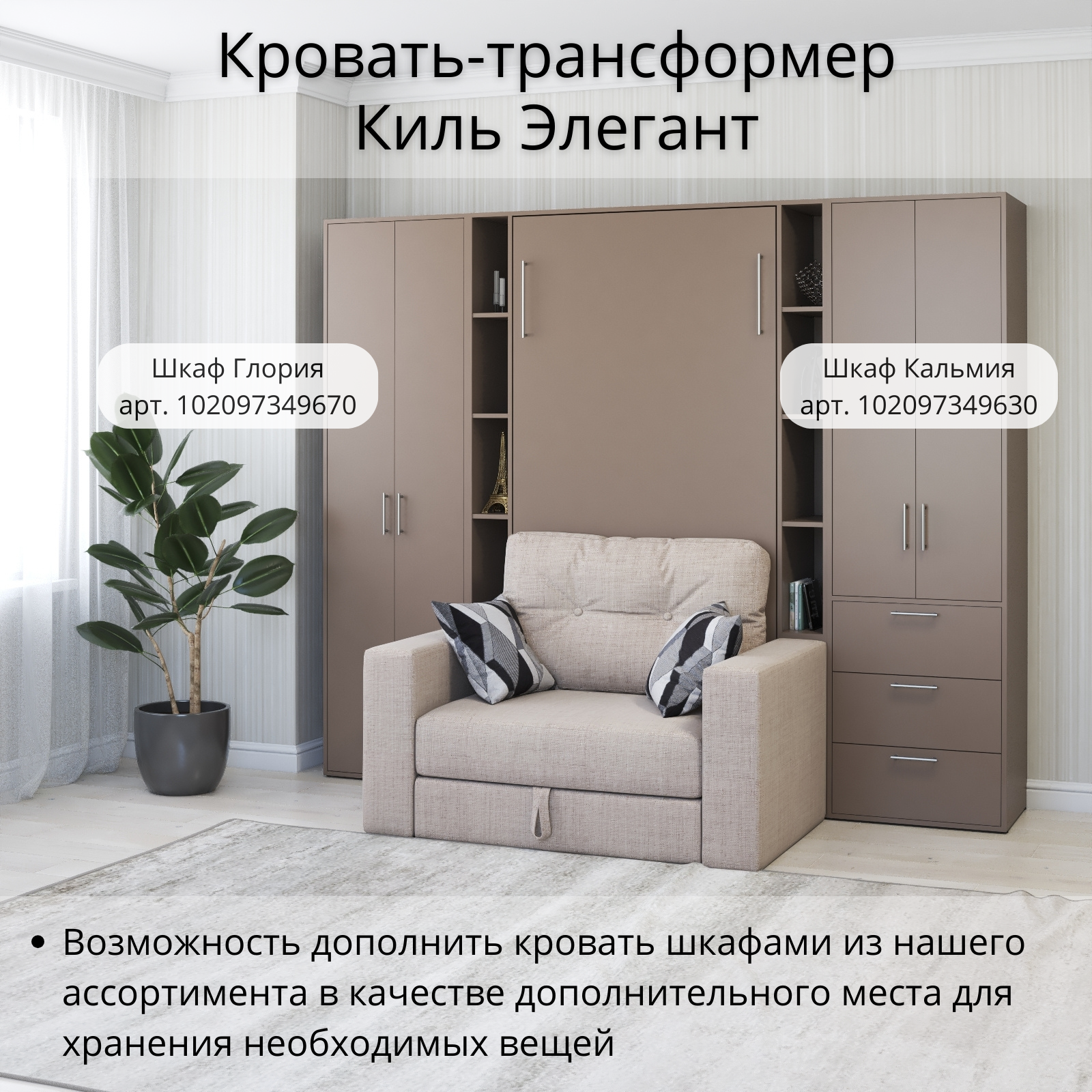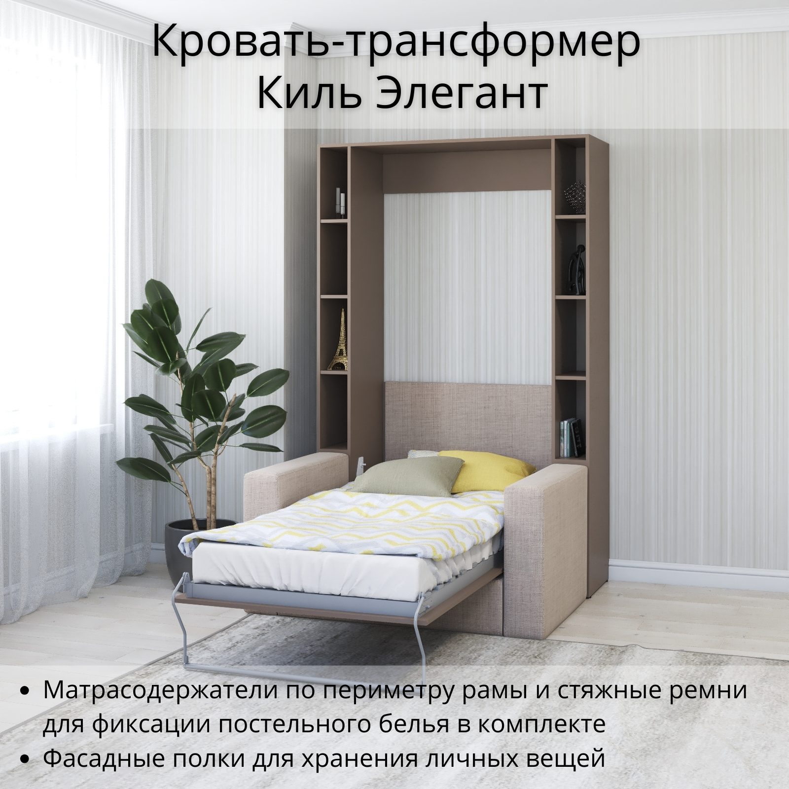 Шкаф кровать трансформер с креплением к стене, Stylint, Киль Элегант, 90х200, Мокко информация: