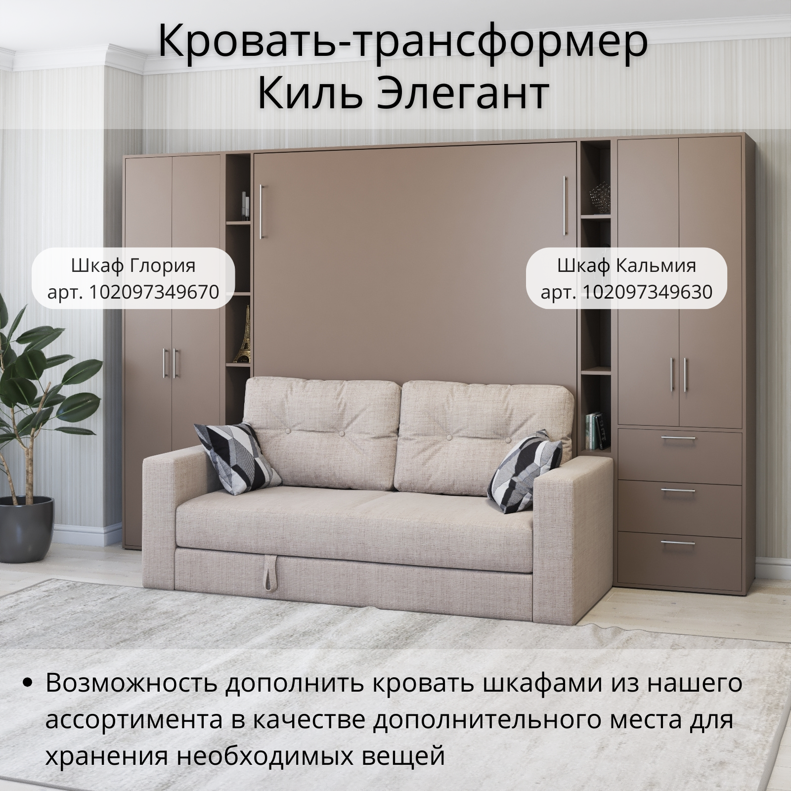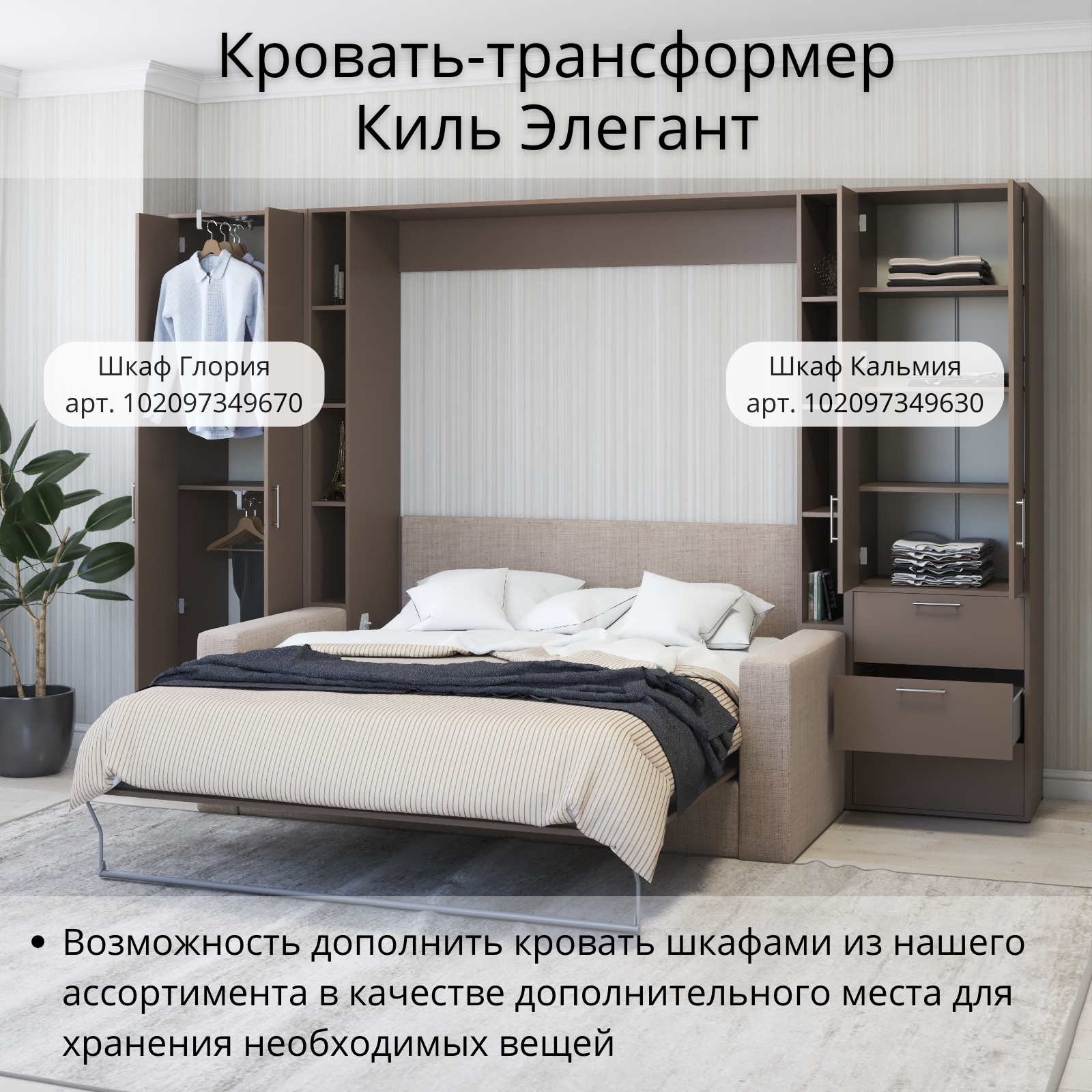 Шкаф кровать трансформер с креплением к стене, Stylint, Киль Элегант, 140х200, Мокко информация:
