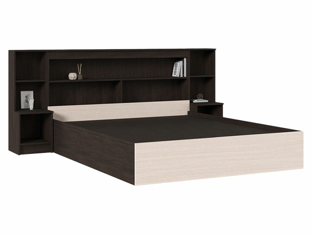 10 цен на Кровать двуспальная Бриз 160х200 см, с полками, Венге / Дуб Белфорт