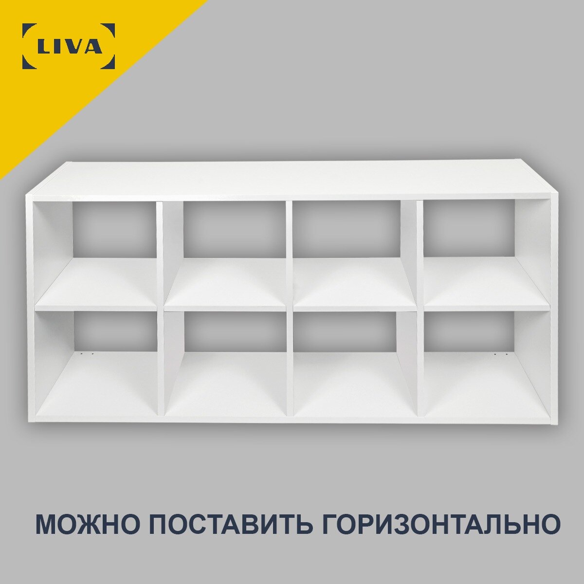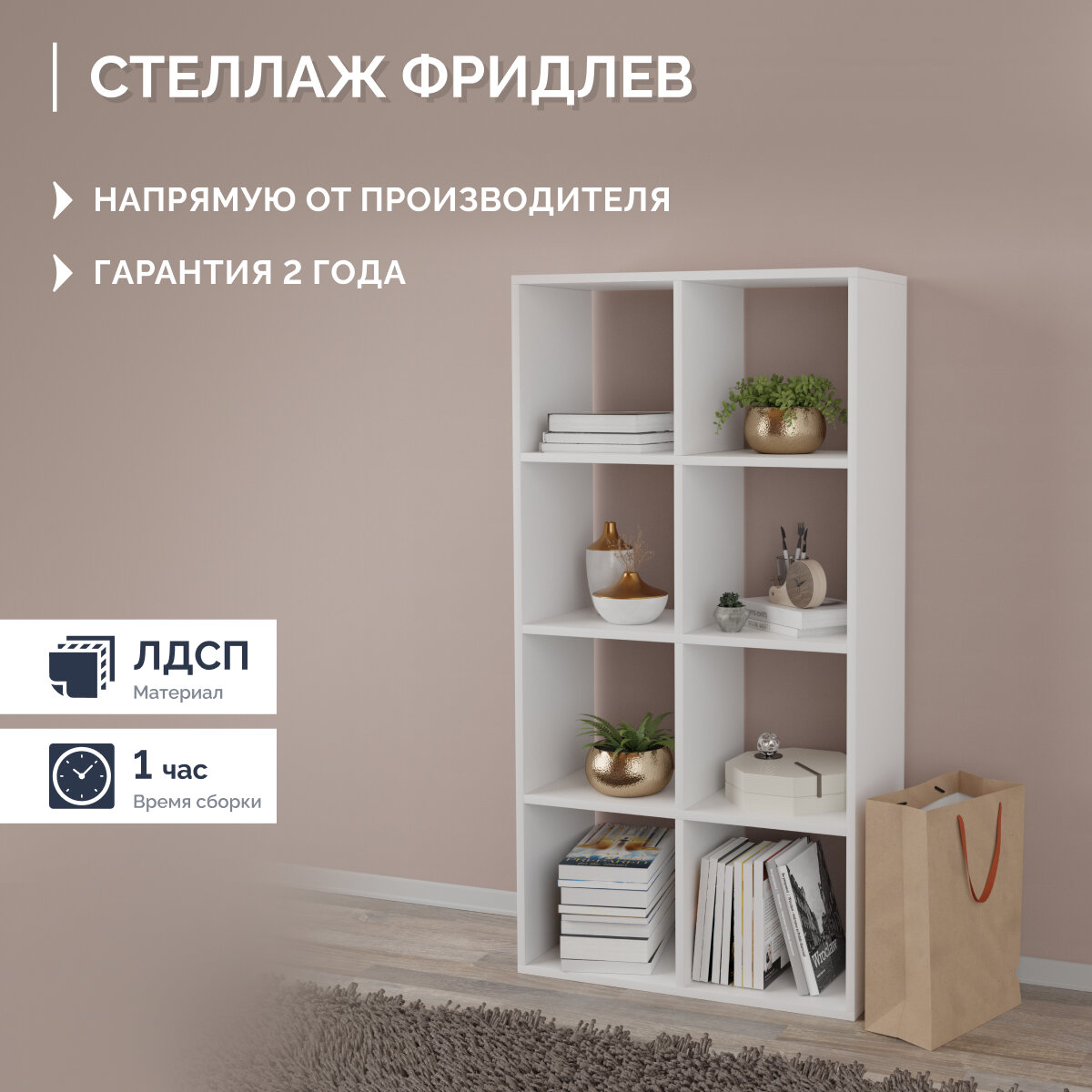 Отзывы на Стеллаж деревянный Фридлев напольный для игрушек, книг, цветов, 8 секций, белый, 66х129х29, LIVA Мебельные решения