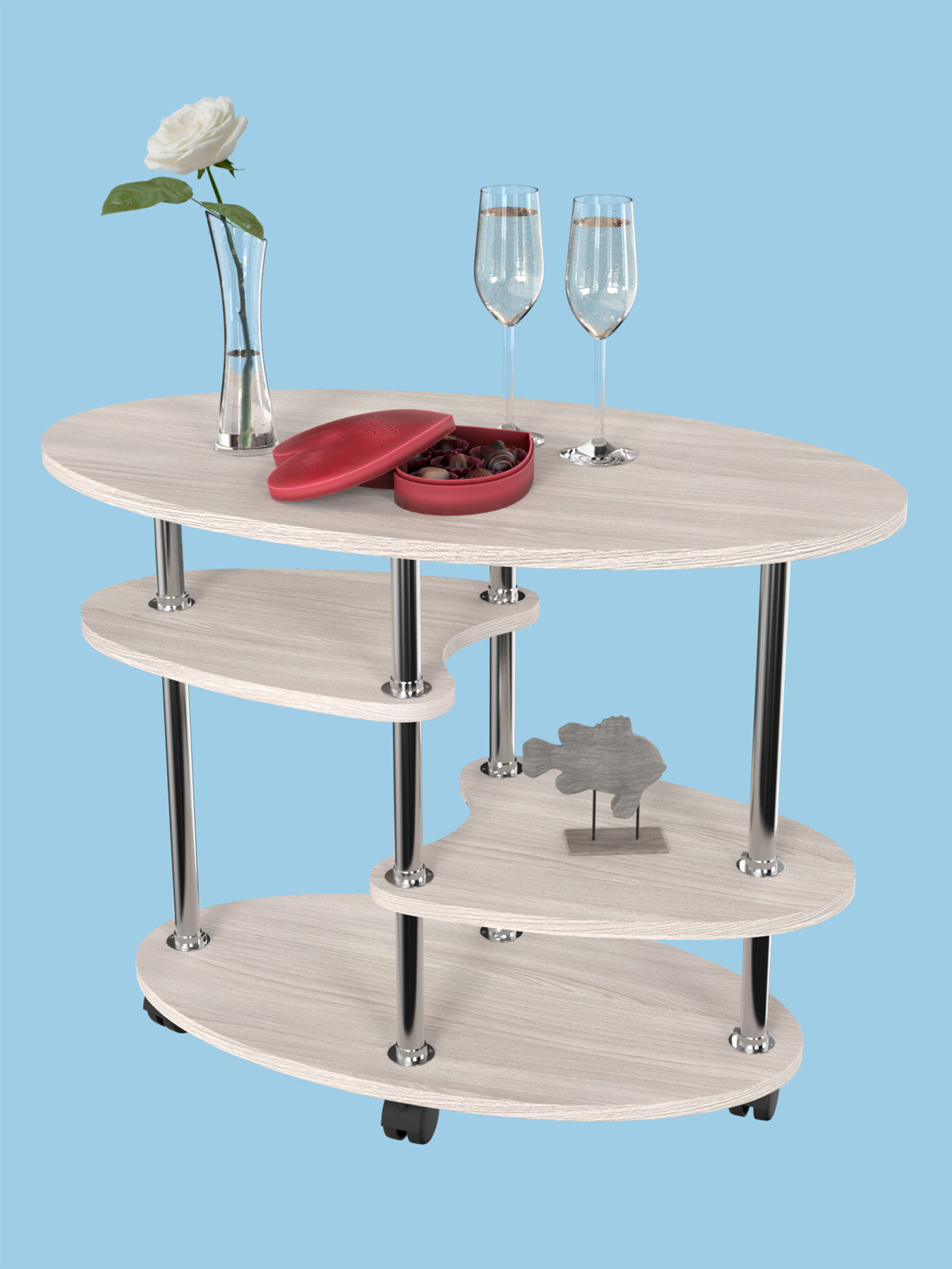 Журнальный столик на колесиках, овальный, 78х44х58 см информация: