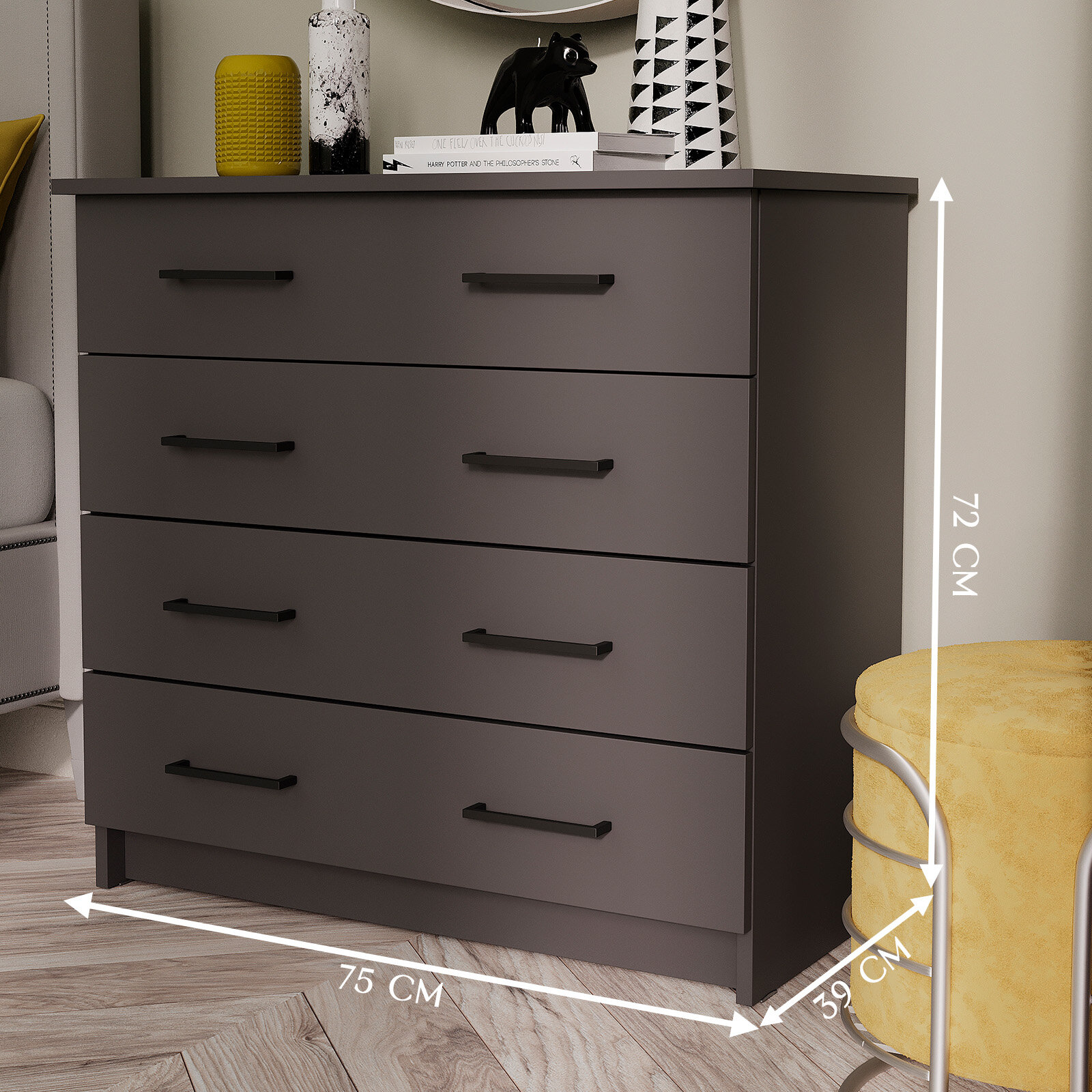 Комод LETTA Malta Plus, ЛДСП, серый, 75х39,2х71,9 см, 4 ящика, роликовые направляющие информация: