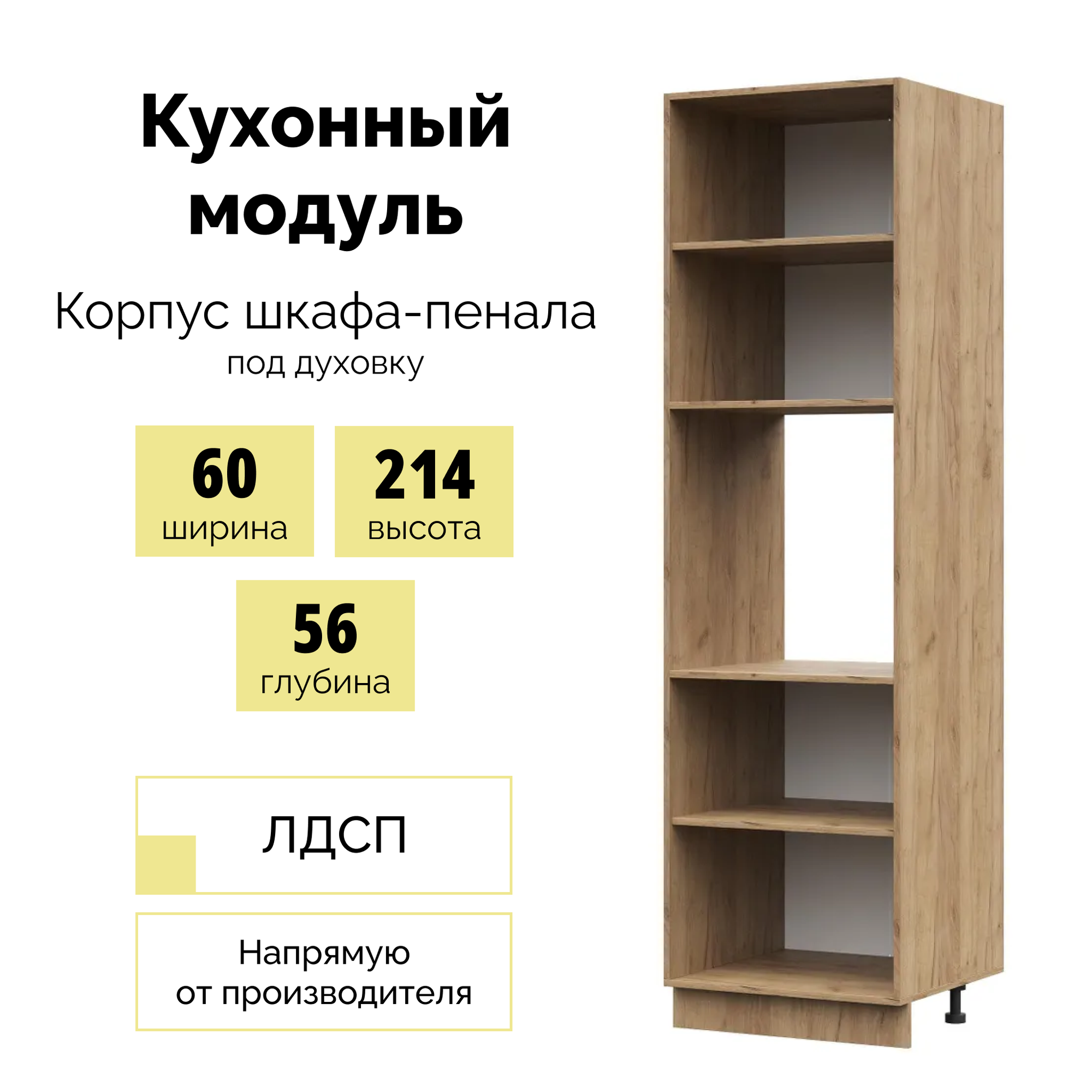 Корпус кухонного шкафа пенала под духовку стеллаж на кухню 60х214см- Крафт золотой информация: